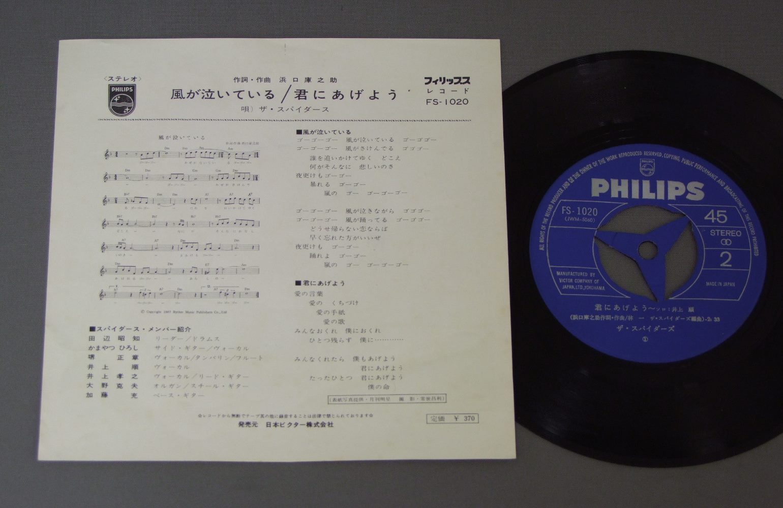 SPIDERSスパイダース/KAZE GA NAITEIRU風が泣いている FS1020 製造国:日本盤 / Media:7inch外観:EX+盤の状態:EX+ 価格(税込):¥550(売約済) 送料 7inch:定形外郵便 360円~LP:定形外郵便 660円~送料は、注文の最終画面で確認頂けます。 > > SPIDERS/KAZE GA NAITEIRU 外観 (EX+)特記事項:特記なし。外観EX+の共通説明:中古としては美品、一見してきれいでダメージが軽微。シミ、ヨゴレ、スレ有っても僅か~少し。 盤の状態 (EX+)特記事項:極薄いスリキズ・スレ少し。一見してきれいな状態です。盤EX+の共通説明:盤面の極薄いスリキズ、スレ少し程度 音に出そうなものは無いように見える(極軽微なソフトティック音は除く)。 Tweet それぞれの画像をクリックすると、大きい写真が見られます こちらの商品もお勧めです 660円 YUZO KAYAMA加山雄三 / 15TH ANNIVERSARY加山雄三1976 武道館ライブ 1,320円 YUZO KAYAMA & LAUNCHERS加山雄三とランチャーズ / 1st ALBUM ( REISSUE )青春・愛その時 (幻の1st ALBUM ) 550円 TIGERSタイガース / 10 YEARS ROMANCE十年ロマンス 1,320円 TAKESHI TERAUCHI & BLUEJEANS寺内タケシとブルー・ジーンズ / ELECTRIC GUITAR SONGS WITHOUT SONG歌のないエレキ歌謡曲 2,420円 OXオックス / TELL ME-OX ON STAGE No1テルミー-オックス・オン・ステージ No1 770円 YUZO KAYAMA加山雄三 / GOLDEN ALBUMゴールデン・アルバム(あなたと共に)赤盤 1,650円 MUNETAKA INOUE & HIS SHARP FIVE井上宗孝とシャープ・ファイヴ / SHARP FIVE SCREEN GO GOシャープ・ファイヴ・スクリーン・ゴーゴー 770円 TIGERSタイガース / TIGERS 1982タイガース 1982