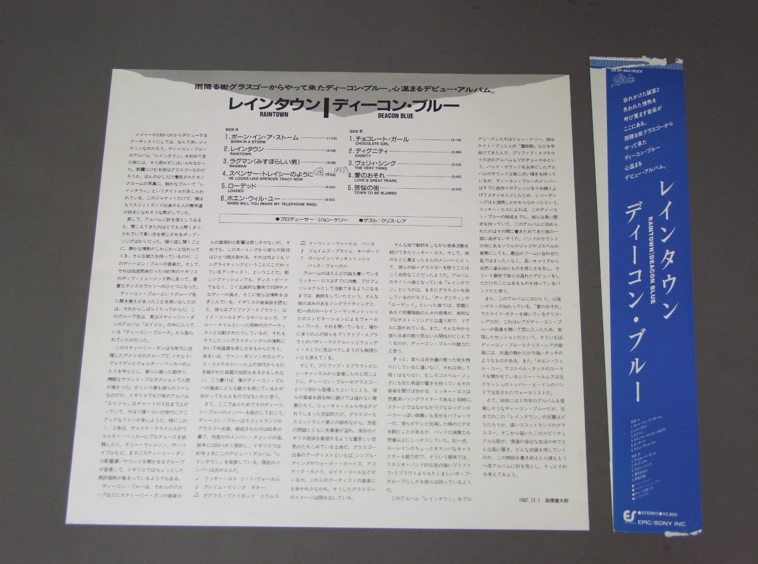 DEACON BLUEディーコン・ブルー/RAIN TOWN1st ALBUM 28 3P864 製造国:日本盤 / Media:LP外観:EX盤の状態:EX+帯:VG 価格(税込):¥880(売約済) 送料 7inch:定形外郵便 360円~LP:定形外郵便 660円~送料は、注文の最終画面で確認頂けます。 > > DEACON BLUE/RAIN TOWN 外観 (EX)特記事項:特記なし。外観EXの共通説明:ダメージが限定的。中古品としては保存状態がよい方。シミ、ヨゴレ、スレ 少し~軽度。 盤の状態 (EX+)特記事項:極薄いスリキズ・スレ少し。一見してきれいな状態です。盤EX+の共通説明:盤面の極薄いスリキズ、スレ少し程度 音に出そうなものは無いように見える(極軽微なソフトティック音は除く)。 帯の状態 (VG):上下に破れ その他:見本盤 Tweet それぞれの画像をクリックすると、大きい写真が見られます こちらの商品もお勧めです 770円 NENAネーナ / ? (FRAGEZEICHEN)? (クエスチョンマーク) 1,320円 QUARTERFLASHクウォーターフラッシュ / QUARTERFLASHミッドナイト・フラッシュ 1,320円 CLASSIX NOUVEAUXクラシックス・ヌヴォー / NIGHT PEOPLE夜行人間 1,210円 GO WESTゴー・ウェスト / MORE BANGS & CRASHESモア・バン ! アンド・クラッシュ ! 770円 MEN AT WORKメン・アット・ワーク / BUSINESS AS USUALワーク・ソングズ 550円 TOUCH / TOUCH 440円 TAXXIタクシー / STATES OF EMERGENCY緊急発進 ! 440円 HIPSWAYヒップスウェイ / HIPSWAYヒップスウェイ