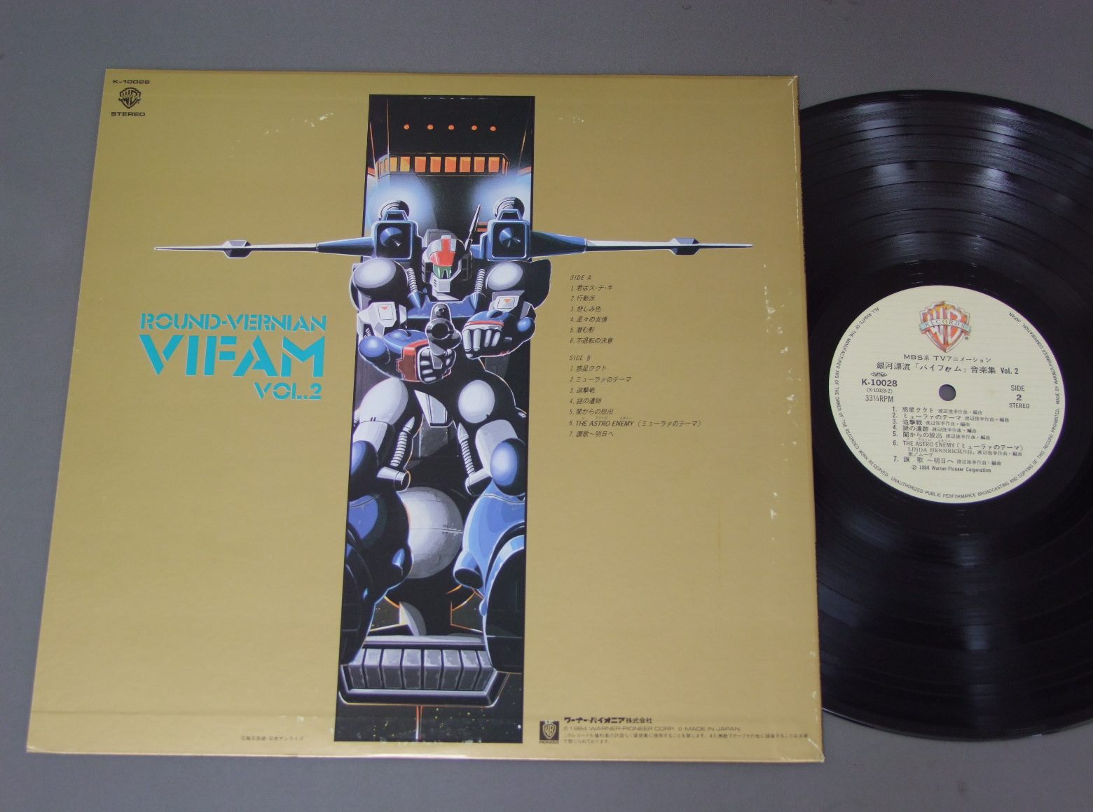 TV ANIME/ROUND-VERNIAN VIFAM VOL2アニメ「銀河漂流バイファム」(音楽集)VOL.2 K10028 製造国:日本盤 / Media:LP外観:EX盤の状態:EX+ 価格(税込):¥1,100(売約済) 送料 7inch:定形外郵便 360円~LP:定形外郵便 660円~送料は、注文の最終画面で確認頂けます。 > > TV ANIME/ROUND-VERNIAN VIFAM VOL2 外観 (EX)特記事項:特記なし。外観EXの共通説明:ダメージが限定的。中古品としては保存状態がよい方。シミ、ヨゴレ、スレ 少し~軽度。 盤の状態 (EX+)特記事項:極薄いスリキズ・スレ少し。一見してきれいな状態です。盤EX+の共通説明:盤面の極薄いスリキズ、スレ少し程度 音に出そうなものは無いように見える(極軽微なソフトティック音は除く)。 Tweet それぞれの画像をクリックすると、大きい写真が見られます こちらの商品もお勧めです 1,320円 KEITH EMARSONキース・エマーソン / ORIGINAL SOUNDTRACK HARMAGEDON映画 幻魔大戦ドラマ編 990円 SHOTARO ISHINOMORI石ノ森章太郎 / CYBORG 009サイボーグ009 550円 CRUSHER JOEクラッシャージョウ / ORIGINAL SOUND TRACKドラマ篇 770円 ANIMETOPIAアニメトピア / 3アニメトピア3 440円 TALIZMANタリスマン / SUPERMAN LOCKロック組曲 超人ロック 770円 CRUSHER JOEクラッシャージョウ / SOUND TRACK音楽篇 770円 ROUND-VERNIAN VIFAM銀河漂流バイファム / SOUNDTRACK EXTRA EDITION音楽集・番外編 1,320円 ANIME GATCHAMANアニメ 科学忍者隊 ガッチャマン / GATCHAMAN 2 VOL2ガッチャマン? VOL2