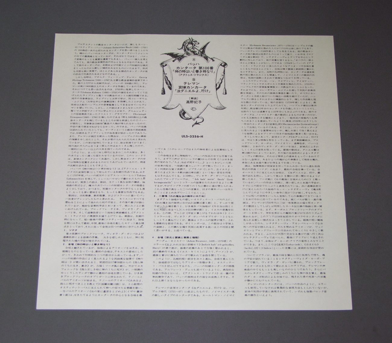 RUDOLF POHLルドルフ・ポール/BACH CANTATA BWV106バッハ カンタータ 第106番「神の時はいと善き時なり」 ULS3256H 製造国:日本盤 / Media:LP外観:EX+盤の状態:EX帯:EX+ 価格(税込):¥990(売約済) 送料 7inch:定形外郵便 360円~LP:定形外郵便 660円~送料は、注文の最終画面で確認頂けます。 > > RUDOLF POHL/BACH CANTATA BWV106 外観 (EX+)特記事項:特記なし。外観EX+の共通説明:中古としては美品、一見してきれいでダメージが軽微。シミ、ヨゴレ、スレ有っても僅か~少し。 盤の状態 (EX)特記事項:薄いスリキズ・スレ軽くある感じ。殆どが軽微なものの様子です。盤EXの共通説明:盤面のスリキズが薄いものが少し~軽度 音に出そうなものは無いように見える(軽微なソフトティック音は除く)。 帯の状態 (EX+):特記なし。 Tweet それぞれの画像をクリックすると、大きい写真が見られます こちらの商品もお勧めです 990円 WENZINGERヴェンツィンガー / TELEMANN TAFELMUSIKテレマン ターフェルムジーク 990円 KARL RICHTER etcカール・リヒター他 / BACH - MUSIKALISCHES OPFER BWV1079バッハ - 音楽の捧げもの 990円 RAMPAL - LARRIEUランパル - ラリュー / HANDEL - 4 SONATES POUR FLUTE ABEC ET CLAVECINetcフルートの為のバロック音楽第2集 990円 SMETANA STRING QUARTETスメタナ弦楽四重奏団 / DVORAK - STRING QUARTET No6ドヴォルザーク-弦楽四重奏第6番アメリカ 440円 SMETANA QUARTETスメタナ四重奏団 / SCHUBERT - QUARTET NO14 DEATH AND THE MAIDEN etcシューベルト - 第14番 死と乙女 他 1,320円 ALBAN BERG QUARTETT WIENウィーン・アルバン・ベルク四重奏団 / SCHUBERT - STRIEICHQUARTETTEシューベルト - 弦楽四重奏 1,320円 UTO UGHI - LAMAR CROWSONウート・ウーギ & ラマー・クローソン / BEETHOVEN - SONATAS FOR VIOLIN & PIANOベートーヴェン - ヴァイオリン・ソナタ第9番8番 2,640円 GIESEKING & PHILHARMONIA WIND QUARTETギーゼキング フィルハーモニア木管四重奏団 / MOZART QUINTET K452ピアノと木管の為の五重奏曲 モーツァルト K452