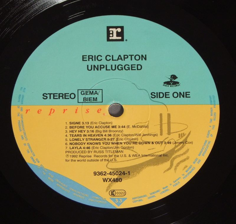 ERIC CLAPTON/UNPLUGGED WX480 製造国:欧州共通盤 / Media:LP外観:EX盤の状態:EX 価格(税込):¥7,700(売約済) 送料 7inch:定形外郵便 360円~LP:定形外郵便 660円~送料は、注文の最終画面で確認頂けます。 > > ERIC CLAPTON/UNPLUGGED 外観 (EX)特記事項:ジャケ表面は見開きも含めて全体的にスレやスリキズ、よごれなどは薄い感じ。外観EXの共通説明:ダメージが限定的。中古品としては保存状態がよい方。シミ、ヨゴレ、スレ 少し~軽度。 盤の状態 (EX)特記事項:薄いスリキズ・スレ少しある程度。音に出そうなものもなく一見してきれいな状態です。曲間など、静かなところを中心に聴いて見ましたが、チリノイズ少ないきれいな再生具合でした。盤EXの共通説明:盤面のスリキズが薄いものが少し~軽度 音に出そうなものは無いように見える(軽微なソフトティック音は除く)。 その他:ドイツ・プレスの欧州共通盤 Tweet それぞれの画像をクリックすると、大きい写真が見られます こちらの商品もお勧めです 6,600円 CREAM / CREAM ON TOP 3,850円 CREAM / BEST OF CREAM