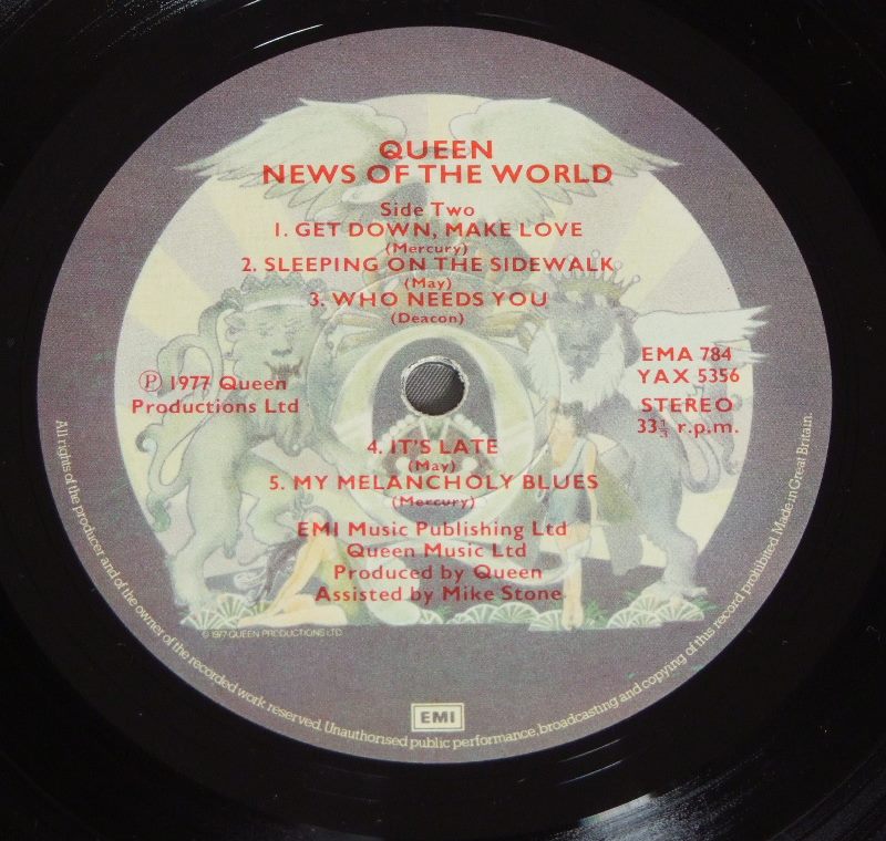 QUEEN/NEWS OF THE WORLD EMA784 製造国:英国盤 / Media:LPMatrix: -1/1/MG | 2/1/RD外観:EX盤の状態:EX 価格(税込):¥5,500(売約済) 送料 7inch:定形外郵便 360円~LP:定形外郵便 660円~送料は、注文の最終画面で確認頂けます。 > > QUEEN/NEWS OF THE WORLD 外観 (EX)特記事項:角スレ多少有り。ジャケ表面は全体的にスレやスリキズ、よごれ等は薄い感じ。オリジナルインナーは片サイドに僅かな抜け有り。外観EXの共通説明:ダメージが限定的。中古品としては保存状態がよい方。シミ、ヨゴレ、スレ 少し~軽度。 盤の状態 (EX)特記事項:薄いスリキズ・スレ軽く有る感じ。殆どが軽微なものの様子で、きれいな印象。B2にすったようなすれ傷がありますが、音には出ていない様子。曲間など、静かなところを中心に聴いて見ましたが、チリノイズ少ないきれいな再生具合でした。盤EXの共通説明:盤面のスリキズが薄いものが少し~軽度 音に出そうなものは無いように見える(軽微なソフトティック音は除く)。 Tweet それぞれの画像をクリックすると、大きい写真が見られます こちらの商品もお勧めです