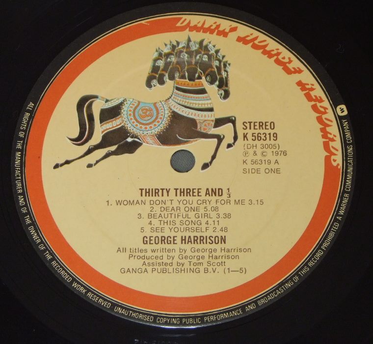 GEROGE HARRISON/THIRTY THREE AND 1/30 K56319 製造国:英国盤 / Media:LPMatrix:A12 | B13外観:EX盤の状態:EX 価格(税込):¥6,050(売約済) 送料 7inch:定形外郵便 360円~LP:定形外郵便 660円~送料は、注文の最終画面で確認頂けます。 レコード検索 > 全てのジャンル > GEROGE HARRISON/THIRTY THREE AND 1/30 外観 (EX)特記事項:底角でスレ多少有り。底スレは多少有りますが、ヘリスレ等は全体的に薄い感じです。ジャケ表面は表裏共にスレやスリキズ、よごれ等は少ない感じ。見開きは上下にスレよごれ多少有り。オリジナルインナーはしっかりした感じで抜けやヨレは無いです。外観EXの共通説明:ダメージが限定的。中古品としては保存状態がよい方。シミ、ヨゴレ、スレ 少し~軽度。 盤の状態 (EX)特記事項:薄いスリキズ・スレ軽く有る感じ。殆どが軽微なものの様子で、きれいな印象。曲間など、静かなところを中心に聴いて見ましたが、チリノイズ少ないきれいな再生具合でした。盤EXの共通説明:盤面のスリキズが薄いものが少し~軽度 音に出そうなものは無いように見える(軽微なソフトティック音は除く)。 Tweet それぞれの画像をクリックすると、大きい写真が見られます こちらの商品もお勧めです 4,950円 JOHN & YOKO - PLASTIC ONO BANDF / SOME TIME IN NEW YORK CITY 5,500円 BEATLES / AT THE HOLLYWOOD BOWL 5,500円 GEORGE HARRISON / THIRTY THREE & 1/3 5,500円 GEORGE HARRISON / LIVING IN THE MATERIAL WORLD 5,500円 JOHN LENNON / SHAVED FISH