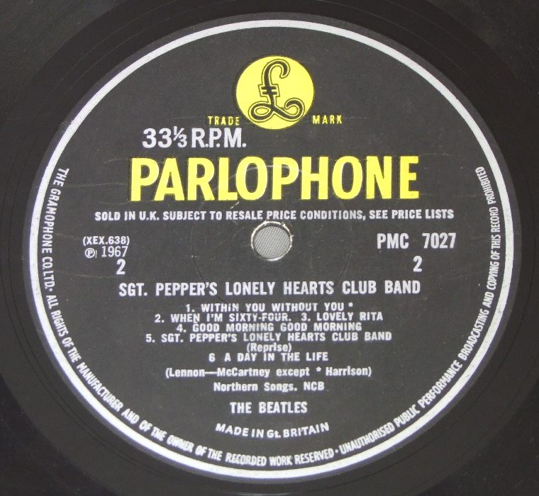 BEATLES/SGT. PEPPERS MONO PMC7027 製造国:英国盤 / Media:LPMatrix: -1/3/APP | -1/3-AAT外観:EX盤の状態:EX- 価格(税込):¥13,200(売約済) 送料 7inch:定形外郵便 360円~LP:定形外郵便 660円~送料は、注文の最終画面で確認頂けます。 > > BEATLES/SGT. PEPPERS MONO 外観 (EX)特記事項:角スレ多少有り。背にスレやよごれが少し。ジャケ表面は全体的にコーティングのヨレシワは少なめ。レコードリングスレ等は多少有りますがスレは全体的に薄い感じ。裏ジャケにスリキズが少し。見開きはきれいな感じ。おまけのカットアウトは緑色の濃い初期タイプ。ヨレやよごれ等はあまりない感じです。赤白のインナーは底にテープ補修。片サイドに抜け有ります。ヨレはたしょう有りますが、それ程多い感じでも無いです。外観EXの共通説明:ダメージが限定的。中古品としては保存状態がよい方。シミ、ヨゴレ、スレ 少し~軽度。 盤の状態 (EX-)特記事項:薄いスリキズ・スレ軽く有る感じ。音に出そうなものもなく一見してきれいな状態です。曲間など、静かなところを中心にMONO針で聴いて見ましたが、音の薄いような所でチリノイズ軽度有るようです。音はクリアーできれいに名っている様子。盤EX-の共通説明:盤面のスリキズが多少有り。音に出そうなものは殆ど無いように見える~さほど気にならないぐらいの軽いプチ数カ所程度。 Tweet それぞれの画像をクリックすると、大きい写真が見られます こちらの商品もお勧めです 5,500円 JOHN LENNON / SHAVED FISH 5,500円 GEORGE HARRISON / THIRTY THREE & 1/3 4,950円 JOHN & YOKO - PLASTIC ONO BANDF / SOME TIME IN NEW YORK CITY 5,500円 GEORGE HARRISON / LIVING IN THE MATERIAL WORLD 5,500円 BEATLES / AT THE HOLLYWOOD BOWL
