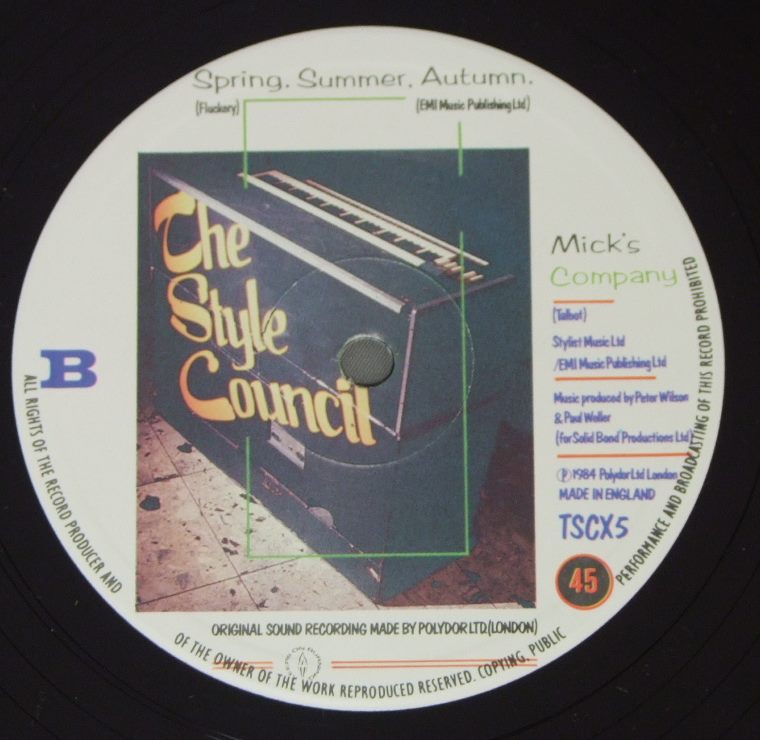 STYLE COUNCIL/MY EVER CHANGING MOODS両面マト1 TSCX5 製造国:英国盤 / Media:12inchMatrix:A//1 | B//1外観:EX盤の状態:EX 価格(税込):¥7,700(売約済) 送料 7inch:定形外郵便 360円~LP:定形外郵便 660円~送料は、注文の最終画面で確認頂けます。 > > STYLE COUNCIL/MY EVER CHANGING MOODS 外観 (EX)特記事項:レコード取り出し口付近までシュリンク袋が付属。レコード取り出し口縁にヨレ。角スレ多いです。外観EXの共通説明:ダメージが限定的。中古品としては保存状態がよい方。シミ、ヨゴレ、スレ 少し~軽度。 盤の状態 (EX)特記事項:薄いスリキズ・細かい表面スレ多少ある感じ。殆どが軽微なものの様子です。所々聴いてみましたが、チリノイズ少ないきれいな再生具合。音質的には十分EXの印象でした。盤EXの共通説明:盤面のスリキズが薄いものが少し~軽度 音に出そうなものは無いように見える(軽微なソフトティック音は除く)。 その他:両面マト1は貴重 Tweet それぞれの画像をクリックすると、大きい写真が見られます こちらの商品もお勧めです