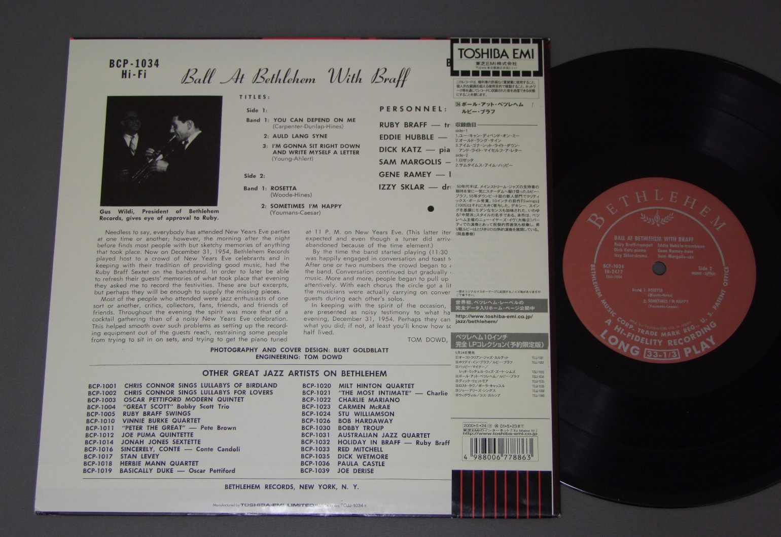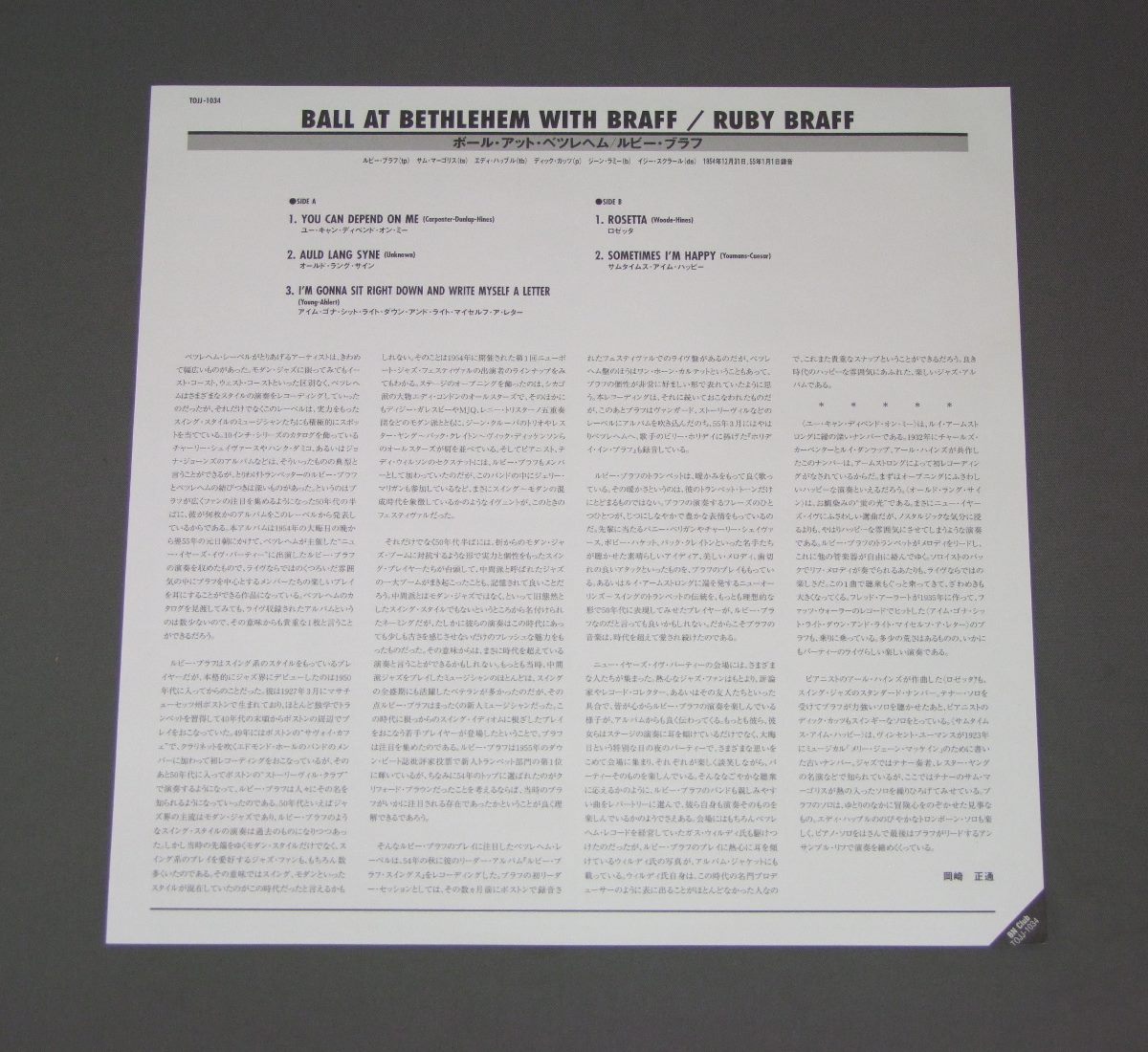RUBY BRAFFルビー・ブラフ/BALL AT BETHLEHEM WITH BRAFFボール・アット・ベツレヘム BCP1034 製造国:日本盤 / Media:10inch外観:EX+盤の状態:EX帯:EX+ 価格(税込):¥1,650(売約済) 送料 7inch:定形外郵便 360円~LP:定形外郵便 660円~送料は、注文の最終画面で確認頂けます。 > > RUBY BRAFF/BALL AT BETHLEHEM WITH BRAFF 外観 (EX+)特記事項:特記なし。コンディションリストを参照ください。外観EX+の共通説明:中古としては美品、一見してきれいでダメージが軽微。シミ、ヨゴレ、スレ有っても僅か~少し。 盤の状態 (EX)特記事項:薄いスリキズ・スレ軽くある感じ。殆どが軽微なものの様子です。盤EXの共通説明:盤面のスリキズが薄いものが少し~軽度 音に出そうなものは無いように見える(軽微なソフトティック音は除く)。 帯の状態 (EX+):特記なし。コンディションリストを参照ください。 Tweet それぞれの画像をクリックすると、大きい写真が見られます こちらの商品もお勧めです 770円 BUNK JOHNSON - KID ORY etcバンク・ジョンソン-キッド・オリー他 / NEW ORLEANS MEMORIESニュー・オーリンズ・メモリーズ 880円 BOBBY & MUGGSYボビー・アンド・マグシー / HORN A PLENTY 990円 BENNY GOODMAN COMBOSベニー・グッドマン・コンボ / BENNY GOODMAN COMBOSベニー・グッドマン・コンボ 770円 VARIOUS ARTISTS / 22nd ALL JAPAN DIXIELAND JAZZ FESTIVAL第22回全日本ディキシーランド・ジャズ・フェスティバル 660円 TEDDY WILSON / THREE LITTLE WORDS 1,320円 BENNY GOODMANベニー・グッドマン / BENNY`S BOP VOL.2ベニーズ・バップ 第2集 440円 HARRY JAMES / JAZZ HISTORICAL RECORDINGS 1938 & 42 1,210円 DUKE ELLINGTON & HIS ORCHESTRAデューク・エリントン楽団 / AT THE CARNEGIE HALL 1943