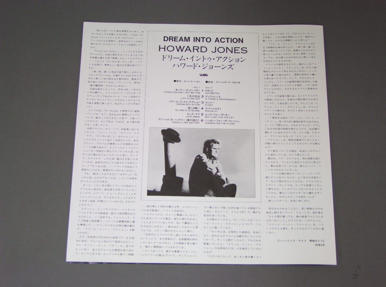 HOWARD JONESハワード・ジョーンズ/DREAM INTO ACTIONドリーム・イントゥ・アクション P13086 製造国:日本盤 / Media:LP外観:EX+盤の状態:EX+帯:EX 価格(税込):¥1,100(売約済) 送料 7inch:定形外郵便 360円~LP:定形外郵便 660円~送料は、注文の最終画面で確認頂けます。 > > HOWARD JONES/DREAM INTO ACTION 外観 (EX+)特記事項:特記なし。外観EX+の共通説明:中古としては美品、一見してきれいでダメージが軽微。シミ、ヨゴレ、スレ有っても僅か~少し。 盤の状態 (EX+)特記事項:薄いスリキズ・スレ少し。一見してきれいな状態です。盤EX+の共通説明:盤面の極薄いスリキズ、スレ少し程度 音に出そうなものは無いように見える(極軽微なソフトティック音は除く)。 帯の状態 (EX):特記なし。 Tweet それぞれの画像をクリックすると、大きい写真が見られます こちらの商品もお勧めです 440円 TEN TENテン・テン / WALK ONウォーク・オン 440円 GLASS TIGERグラス・タイガー / DIAMOND SUNダイヤモンド・サン 770円 CHEAP TRICKチープ・トリック / HEAVEN TONIGHT天国の罠(トリック) 550円 TOUCH / TOUCH 440円 TAXXIタクシー / STATES OF EMERGENCY緊急発進 ! 550円 BOOM CRASH OPERAブーム・クラッシュ・オペラ / GREAT WALLグレイト・ウォール 770円 CULTUTE CLUB / HOUSE ON FIRE 770円 CHEAP TRICKチープ・トリック / AT BUDOKANAT 武道館