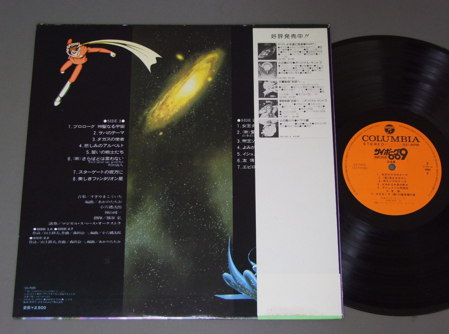 CYBORG 009/MAGICAL SPACE ORCHESTRAサイボーグ009 超銀河伝説〈音楽集〉 CX7005 製造国:日本盤 / Media:LP外観:EX盤の状態:EX帯:EX 価格(税込):¥1,100(売約済) 送料 7inch:定形外郵便 360円~LP:定形外郵便 660円~送料は、注文の最終画面で確認頂けます。 > > CYBORG 009/MAGICAL SPACE ORCHESTRA 外観 (EX)特記事項:特記なし。外観EXの共通説明:ダメージが限定的。中古品としては保存状態がよい方。シミ、ヨゴレ、スレ 少し~軽度。 盤の状態 (EX)特記事項:薄いスリキズ・スレ軽くある感じ。プチ出そうなところは少しだけで、ほとんどが軽微なものの様子です。盤EXの共通説明:盤面のスリキズが薄いものが少し~軽度 音に出そうなものは無いように見える(軽微なソフトティック音は除く)。 帯の状態 (EX):特記なし。 Tweet それぞれの画像をクリックすると、大きい写真が見られます こちらの商品もお勧めです 550円 CRUSHER JOEクラッシャージョウ / ORIGINAL SOUND TRACKドラマ篇 550円 MOBILE SUIT GUNDAM 3機動戦士ガンダム 3 / ORIGINAL BGM COLLECTIONアムロよ 1,320円 ANIME GATCHAMANアニメ 科学忍者隊 ガッチャマン / GATCHAMAN 2 VOL2ガッチャマン? VOL2 990円 SHOTARO ISHINOMORI石ノ森章太郎 / CYBORG 009サイボーグ009 770円 CRUSHER JOEクラッシャージョウ / SYMPHONIC SUITE交響組曲 1,210円 ANIME MACROSSマクロス / MISS DJテレビドラマ篇 1,650円 ANIMEアニメ / CYBORG 009サイボーグ009 1,320円 ANIME SIX GOD COMBINATION MARSアニメ 六神合体ゴッドマーズ / MARS AND MARG STORY + POSTERドラマ編マーズ&マーグ物語