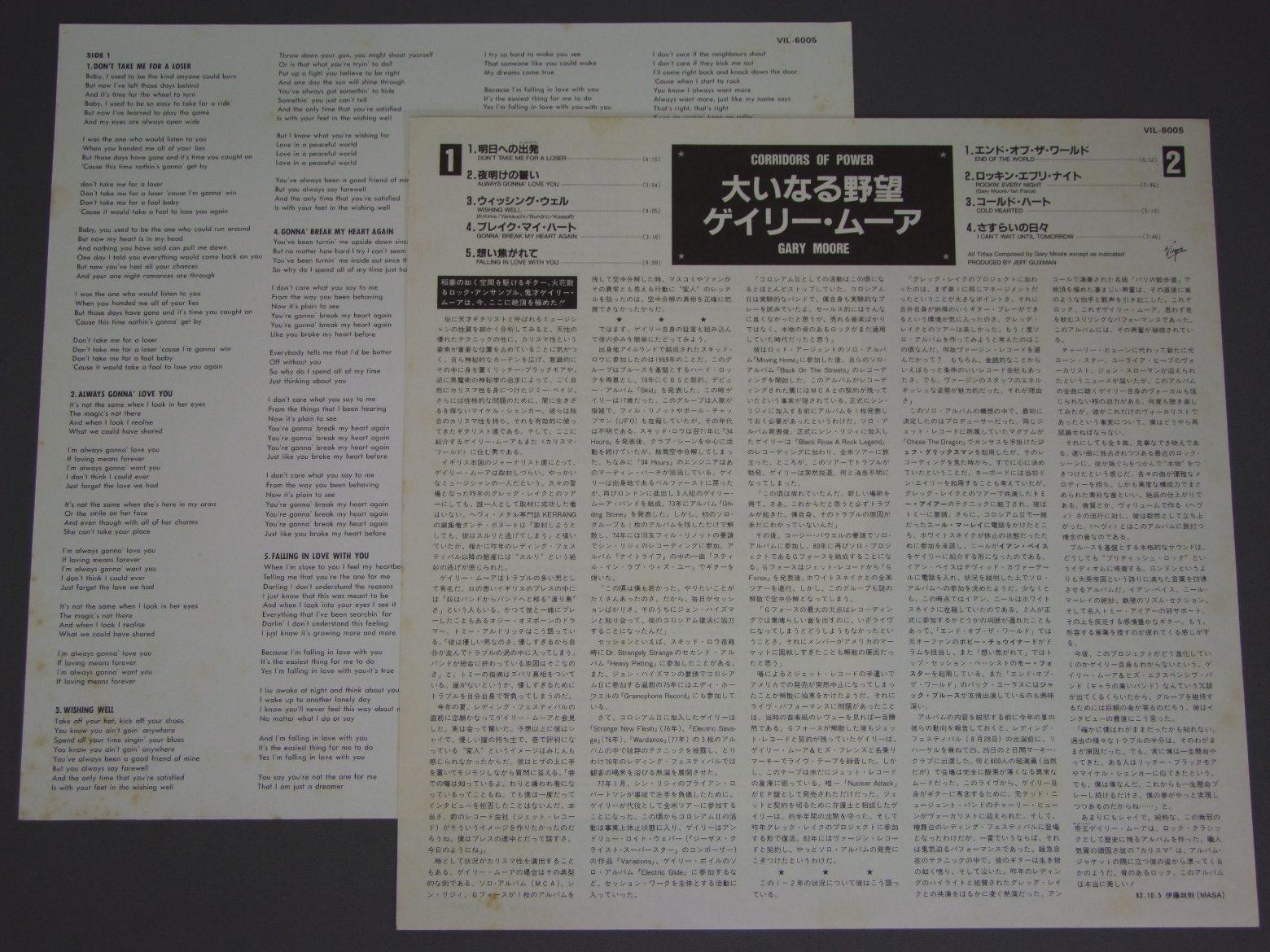 GARY MOORE/CORRIDORS OF POWER大いなる野望 VIL6005 製造国:日本盤 / Media:LP外観:EX盤の状態:EX 価格(税込):¥550(売約済) 送料 7inch:定形外郵便 360円~LP:定形外郵便 660円~送料は、注文の最終画面で確認頂けます。 > > GARY MOORE/CORRIDORS OF POWER 外観 (EX)特記事項:角スレ多少有り。外観EXの共通説明:ダメージが限定的。中古品としては保存状態がよい方。シミ、ヨゴレ、スレ 少し~軽度。 盤の状態 (EX)特記事項:薄いスリキズ・スレ軽くある感じ。ほとんどが軽微なものの様子です。盤EXの共通説明:盤面のスリキズが薄いものが少し~軽度 音に出そうなものは無いように見える(軽微なソフトティック音は除く)。 Tweet それぞれの画像をクリックすると、大きい写真が見られます こちらの商品もお勧めです 1,980円 MACHAEL SCHENKER GROOPマイケル・シェンカー・グループ / MSG神話 770円 NIGHT RANGERナイト・レンジャー / DAWN PATROL緊急指令 2,200円 HARDCHOIRハードクワイア / HARDCHOIR WLP華麗なる戦慄 770円 IAN GILLAN BANDイアン・ギラン・バンド / LIVE AT THE BUDOKANライブ・イン・ジャパン 1,320円 NIGHT RANGERナイト・レンジャー / MIDNIGHT MADNESSミッドナイト・マッドネス 770円 MICHAEL SCHENKER GROUPマイケル・シェンカー・グループ / CRY FOR THE NATIONSハーフ・ライブ 770円 MONEYマネー / FIRST INVESTMENT誘惑の掟 1,210円 NIGHT RANGERナイト・レンジャー / MIDNIGHT MADNESSナイト・レンジャー