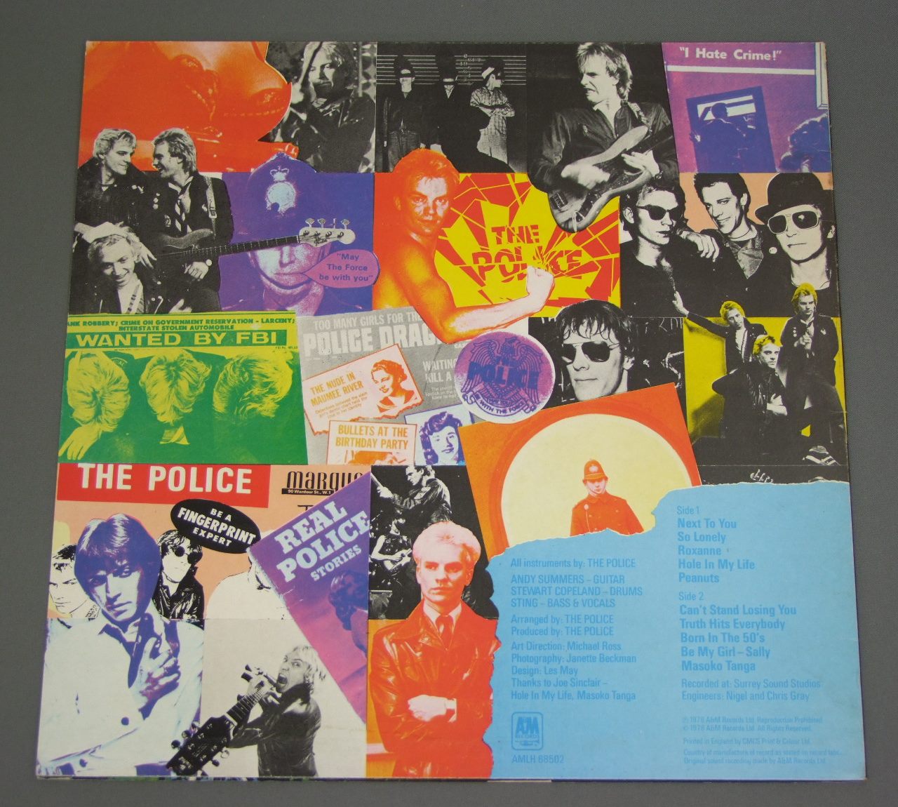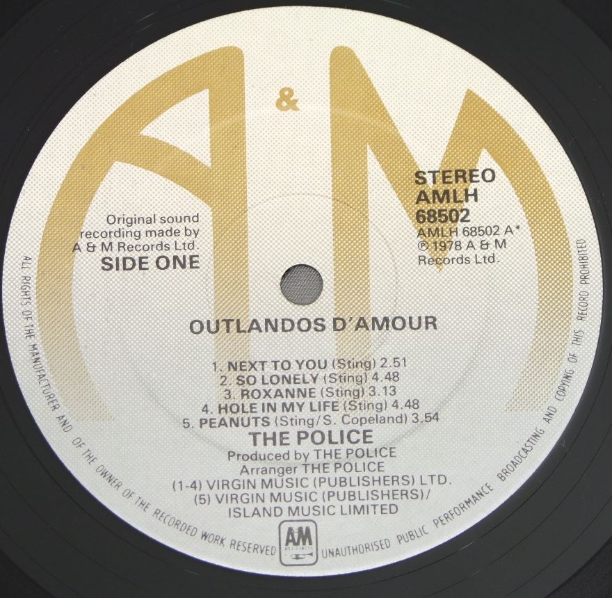 POLICE/OUTLANDOS D`AMOURマト1 AMLH68502 製造国:英国盤 / Media:LPMatrix:A-1/B/25 | B-1/D/11外観:EX盤の状態:EX 価格(税込):¥11,000(売約済) 送料 7inch:定形外郵便 360円~LP:定形外郵便 660円~送料は、注文の最終画面で確認頂けます。 > > POLICE/OUTLANDOS D`AMOUR 外観 (EX)特記事項:底スレ多少有り。ジャケ表面は全体的にスレやスリキズ、よごれ等は薄い感じ。外観EXの共通説明:ダメージが限定的。中古品としては保存状態がよい方。シミ、ヨゴレ、スレ 少し~軽度。 盤の状態 (EX)特記事項:薄いスリキズ・スレ少しと、極うっすらした表面スレが両面ある感じです。音に出そうなものもなく一見してきれいな状態です。曲間など、静かなところを中心に針圧を重めにして聴いて見ましたが、チリノイズ少なめで音自体クリアーでしっかり鳴っていました。盤EXの共通説明:盤面のスリキズが薄いものが少し~軽度 音に出そうなものは無いように見える(軽微なソフトティック音は除く)。 Tweet それぞれの画像をクリックすると、大きい写真が見られます こちらの商品もお勧めです 2,640円 VARIOUS PUNK ARTISTS / YUP IN FLAMES 6,600円 DAMNED / LIVE IN NEWCASTLE 3,520円 STRANGLERS / LIVE ( X CERT ) 3,300円 MOOD SIX / MATTER OFF 3,080円 POLECATS WITH ROBIN SCOTT / CULT HEROES 4,400円 STRAPS / STRAPS 2,640円 VARIOUS CHISWICK ARTIST / CHISWICK CHARTBUSTERS VOL.2 ( LONG SHOTS DEAD CHRTS AND ODDS ON FAVOURITES ) 3,520円 STRANGLERS / AURAL SCULPTURE