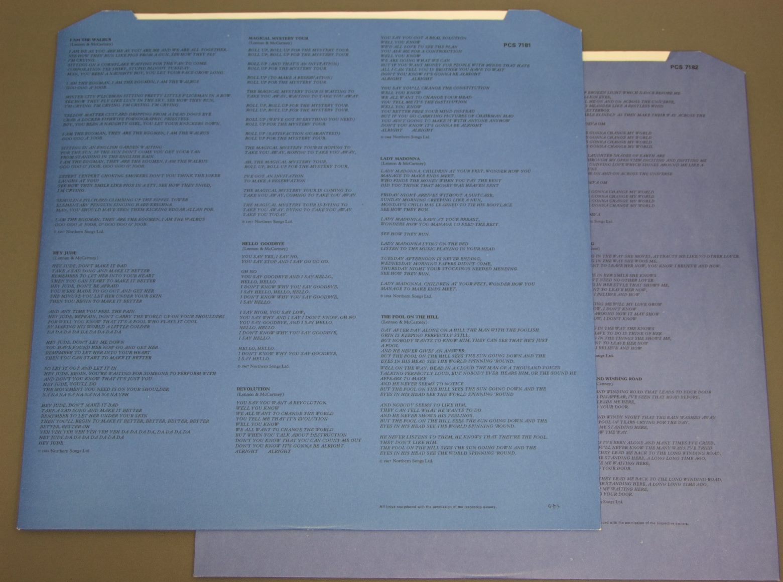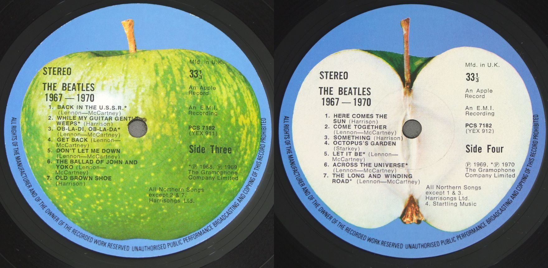 BEATLES/1967-1970初期マト美品 PCSP718 製造国:英国盤 / Media:LPMatrix: 1/2/LD | 3/1/LR | 3/2/MP | 1/1GR外観:EX+盤の状態:EX 価格(税込):¥11,000(売約済) 送料 7inch:定形外郵便 360円~LP:定形外郵便 660円~送料は、注文の最終画面で確認頂けます。 > > BEATLES/1967-1970 外観 (EX+)特記事項:表裏ジャケが厚手のコーティング仕様ですが、ほぼコーティングシワ無しの大変きれいな状態。スレやスリキズ等も無く、全体的にピカピカした状態です。見開きも白い感じが残っています。インナーは角がレコード取り出し口の両サイドがカットされた初期タイプ。底中央に僅かにスレ有りますが抜けはない状態。美品です。外観EX+の共通説明:中古としては美品、一見してきれいでダメージが軽微。シミ、ヨゴレ、スレ有っても僅か~少し。 盤の状態 (EX)特記事項:2枚とも薄いスリキズ・スレ少しある程度。音に出そうなものもほぼなく一見してきれいな状態です。曲間など、静かなところを中心に聴いて見ましたが、チリノイズ少ないきれいな再生具合でした。盤EXの共通説明:盤面のスリキズが薄いものが少し~軽度 音に出そうなものは無いように見える(軽微なソフトティック音は除く)。 Tweet それぞれの画像をクリックすると、大きい写真が見られます こちらの商品もお勧めです 5,500円 GEORGE HARRISON / THIRTY THREE & 1/3 4,950円 JOHN & YOKO - PLASTIC ONO BANDF / SOME TIME IN NEW YORK CITY 5,500円 GEORGE HARRISON / LIVING IN THE MATERIAL WORLD 5,500円 JOHN LENNON / SHAVED FISH 5,500円 BEATLES / AT THE HOLLYWOOD BOWL