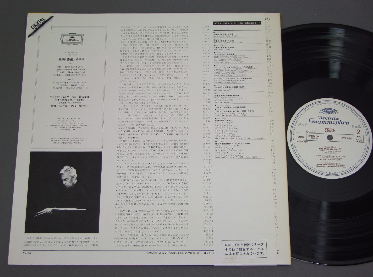 KARAJANカラヤン/HOLST PLANETS digitalホルスト:組曲《惑星》 28MG0183 製造国:日本盤 / Media:LP外観:EX+盤の状態:EX+帯:EX+ 価格(税込):¥1,100(売約済) 送料 7inch:定形外郵便 360円~LP:定形外郵便 660円~送料は、注文の最終画面で確認頂けます。 > > KARAJAN/HOLST PLANETS digital Tweet それぞれの画像をクリックすると、大きい写真が見られます こちらの商品もお勧めです 990円 GYORGY CZIFFRA VANDERNOOTジョルジ・シフラ ヴァンデルノート / LISZT PIANO CONC. リスト ピアノ協奏曲 第1番&第2番 990円 CLIBURN-ORMANDYクライバーン-オーマンディ / GRIEG-CONC.-LISZT-CONC. NO1グリーク-ピアノ協奏曲 -リスト-ピアノ協奏曲 第1番 770円 KARAJAN - BERLIN PHIL.カラヤン ベルリン・フィル / R. STRAUSS - SYNFONIA DOMESTICAリヒャルト・シュトラウス - 家庭交響曲 770円 ARRAU - INBAL -LSOアラウ - インバル - ロンドン・フィル / CHOPIN - PIANO CONCERTO NO2ショパン - ピアノ協奏曲第2番 1,430円 FURTWANGLRフルトヴェングラー / BRUCKNER SYM. NO4 `ROMANTIC`ブルックナー 交響曲第4番変 `ロマンティック` 770円 GEZA ANDA - FRICSAY - RADIO SYMPHONY ORCHESTRA OF BERLINアンダ - フリッチャイ - ベルリン放送交響楽団 / BARTOK - CONCERTOS FOR PIANO & ORCHESTRA NO2&3バルトーク - ピアノ協奏曲第2番3番 990円 KARAJAN - BERLIN PHILHARMONICカラヤン - ベルリン・フィル / BEETHOVEN - SYMPHONY NO6田園 990円 KARAJAN etcカラヤン 他 / BEETHOVEN/OVERTURE CORIOLAN etcベートーヴェン/コリオラン序曲 他