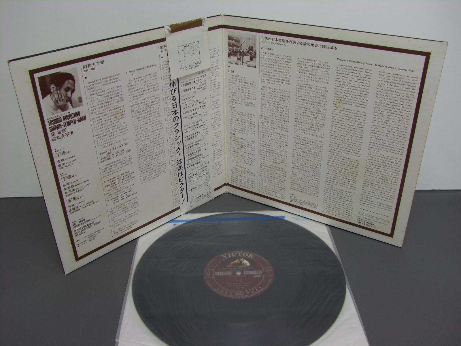 TOSHIRO MAYUZUMI黛敏郎/SHOWAーTEMPYOーRAKU昭和天平楽 VX53 製造国:日本盤 / Media:LP外観:EX盤の状態:EX+帯:EX 価格(税込):¥6,285(売約済) 送料 7inch:定形外郵便 360円~LP:定形外郵便 660円~送料は、注文の最終画面で確認頂けます。 > > TOSHIRO MAYUZUMI/SHOWAーTEMPYOーRAKU 外観 (EX)特記事項:見開きに薄いシミ有り。外観EXの共通説明:ダメージが限定的。中古品としては保存状態がよい方。シミ、ヨゴレ、スレ 少し~軽度。 盤の状態 (EX+)特記事項:極薄いスリキズ・スレ少しだけ。一見してきれいな状態です。盤EX+の共通説明:盤面の極薄いスリキズ、スレ少し程度 音に出そうなものは無いように見える(極軽微なソフトティック音は除く)。 帯の状態 (EX):金色部分に多少退色。裏側はシミが少し。 その他:※画像では確認できない、上下ヘリ、背表紙、取り出し口を中心に状態表記しております。画像で確認出来る表裏ジャケ、レーベルの状態表記は省いている場合がありますので、そちらの状態は画像でご確認をお願い致します。携帯の方は一度PC等で写真をご確認の上ご入札下さいますよう、お願い申し上げます。 Tweet それぞれの画像をクリックすると、大きい写真が見られます こちらの商品もお勧めです 990円 KARAJANカラヤン / BIZET-CARMEN SUITE 1 L`ARLESIENNE SUITES 1 & 2ビゼー -カルメン第1組曲アルルの女 第1-第2組曲 770円 BACKHAUSバックハウス / BEETHOVEN - COMPLETE PIANO SONATAS VOL1 (NO1 2 & 3 )ベートーヴェン - ピアノ奏鳴曲全集第1集 1,320円 VERGENI MRAVINSKYエフゲニー・ムラヴィンスキー / TCHAIKOVSKY - PIANO CONCERTO NO1チャイコフスキー - ピアノ協奏曲 第1番 770円 KARAJAN - BERLIN PHIL.カラヤン - ベルリン・フィル / MOZART -SYMPHONY NO40 & 41モーツアルト交響曲第40番41番 990円 MENUHINメニューイン / MOZART - VIOLIN CONCERTOSモーツアルト - ヴァイオリン協奏曲第4番6番 1,210円 GULINI -CHICAGO SYM.ジュリーニ - シカゴ交響楽団 / MAHLER - SYM. NO9マーラー 交響曲第9番 1,320円 KEMPFFケンプ / BEETHOVEN-PIANO CONC. NO5-3 PIANO SONATASベートーヴェン-ピアノ協奏曲 第5番-3つのピアノ・ソナタ集 990円 ASHKENAZY & PERLMANパールマン & アシュケナージ / FRANCK - SONATA FOR VIOLIN & PIANOフランク - ヴァイオリン奏鳴曲