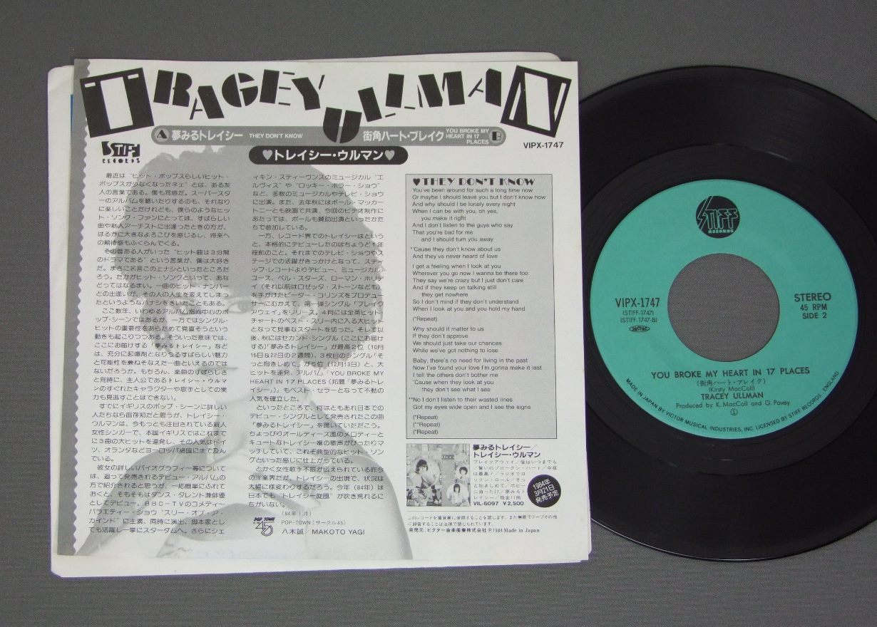 TRACEY ULLMANトレイシーウルマン/THEY DON`T KNOW夢みるトレイシー VIPX1747 製造国:日本盤 / Media:7inch外観:EX盤の状態:EX+ 価格(税込):¥524(売約済) 送料 7inch:定形外郵便 360円~LP:定形外郵便 660円~送料は、注文の最終画面で確認頂けます。 > > TRACEY ULLMAN/THEY DON`T KNOW 外観 (EX)特記事項:裏側にシミが少々。外観EXの共通説明:ダメージが限定的。中古品としては保存状態がよい方。シミ、ヨゴレ、スレ 少し~軽度。 盤の状態 (EX+)特記事項:極薄いスリキズ・スレ少し。一見してきれいな状態です。盤EX+の共通説明:盤面の極薄いスリキズ、スレ少し程度 音に出そうなものは無いように見える(極軽微なソフトティック音は除く)。 Tweet それぞれの画像をクリックすると、大きい写真が見られます こちらの商品もお勧めです 550円 CORBIN HANNER BANDコーバン・ハナー・バンド / SON OF AMERICAサン・オブ・アメリカ 1,320円 NENAネーナ / NENAロックバルーンは99 440円 WILD BLUEワイルド・ブルー / NO MORE JINXノー・モア・ジンクス 770円 TAZMANIAN DEVILSタズマニアン・デヴィルズ / アメリカン・ドリームを探して 770円 CHEAP TRICKチープ・トリック / HEAVEN TONIGHT天国の罠(トリック) 440円 BELLE STARSベル・スターズ / BELLE STARSベル・スターズ 440円 SCREAMING BLUE MESSIAHSスクリーミング・ブルー・メサイアズ / BIKINI REDビキニ・レッド 660円 CULTURE CLUBカルチャー・クラブ / KISSING TO BE CLEVER