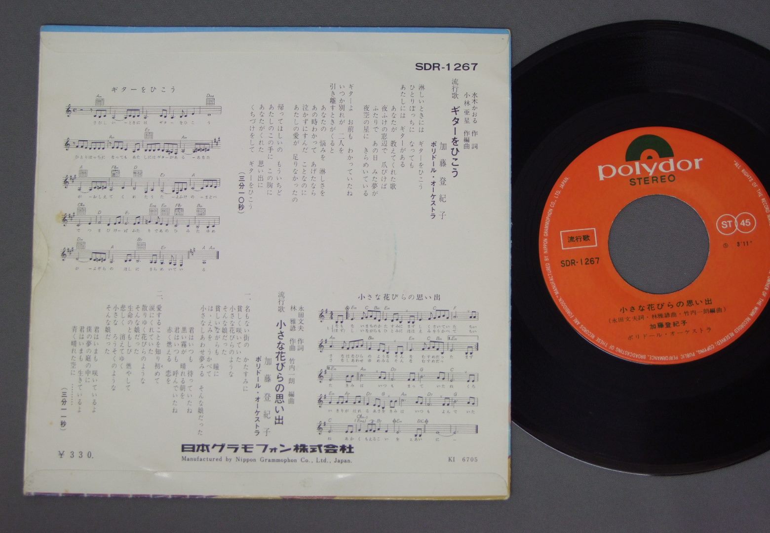 TOKIKO KATO加藤登紀子/ ギターをひこう(67年4枚目) SDR1267 製造国:日本盤 / Media:7inch外観:EX-盤の状態:EX 価格(税込):¥990(売約済) 送料 7inch:定形外郵便 360円~LP:定形外郵便 660円~送料は、注文の最終画面で確認頂けます。 > > TOKIKO KATO/ 外観 (EX-)特記事項:背スレ有り。レコード取り出し口にヨレ。裏ジャケにシミが少し。外観EX-の共通説明:ダメージ軽度~多少。 中古品としては普通の状態。シミ、ヨゴレ、スレなど軽く~多少。 盤の状態 (EX)特記事項:薄いスリキズ・スレ軽くある感じ。ほとんどが軽微なものの様子です。盤EXの共通説明:盤面のスリキズが薄いものが少し~軽度 音に出そうなものは無いように見える(軽微なソフトティック音は除く)。 その他:67年4枚目 Tweet それぞれの画像をクリックすると、大きい写真が見られます こちらの商品もお勧めです 440円 BILLY BANBANビリー・バンバン / BILLY BANBANビリー・バンバン 1,980円 FURUIDO古井戸 / 2nd ALBUMオレンジ色のスケッチ(2nd ALBUM) 1,320円 SHIGERU IZUMIYA泉谷しげる / HIKARI TO KAGE光と影-泉谷しげる VOL4 1,650円 MORIO AGATAあがた森魚 / M.AGATA FIRST ALBAM乙女の儚夢 1,980円 SHOEBERTSはしだのりひことシューベルツ / MEET THE SHOEBERTS FEATURING NORIHIKO HASHIDA未完成 660円 OSAMU KITAYAMA北山修 / CHILDREN WHO DO NOT KNOW THE WAR戦争を知らない子供たち 880円 N.S.Pニュー・サディスティック・ピンク / N.S.P. 2N.S.P. II 1,210円 KUMIKO YOKOI - CHUO CHOIR etc横井久美子・中央合唱団他 / HIROBAうたごえフォーク ひろば