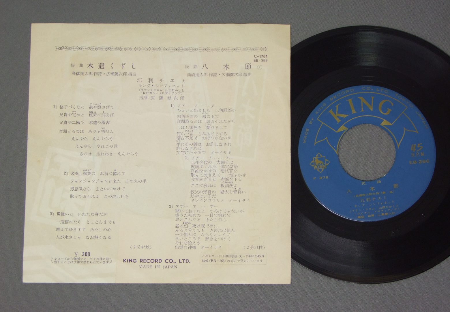 CHIEMI ERI江利チエミ/ 木遣くずし/八木節 C1764/EB266 製造国:日本盤 / Media:7inch外観:EX盤の状態:EX- 価格(税込):¥660(売約済) 送料 7inch:定形外郵便 360円~LP:定形外郵便 660円~送料は、注文の最終画面で確認頂けます。 > > CHIEMI ERI/ 外観 (EX)特記事項:特記無し。コンディションリストを参照下さい。外観EXの共通説明:ダメージが限定的。中古品としては保存状態がよい方。シミ、ヨゴレ、スレ 少し~軽度。 盤の状態 (EX-)特記事項:薄いスリキズ・細かい表面スレ軽くある感じ。全体的には殆どが軽微なものの様子です。盤EX-の共通説明:盤面のスリキズが多少有り。音に出そうなものは殆ど無いように見える~さほど気にならないぐらいの軽いプチ数カ所程度。 Tweet それぞれの画像をクリックすると、大きい写真が見られます こちらの商品もお勧めです 770円 MIDORI SASA笹みどり / BEST HITS下町育ち 笹みどりヒット集 770円 YUJIRO ISHIHARA石原裕次郎 / YUJIRO ISHIHARA ORIGINAL BEST石原裕次郎オリジナルベスト 880円 YUKIO HASHI橋幸夫 / FROM ITAKOGASA TO MUHYO黄金の声/潮来笠から霧氷まで 660円 CHIEKO SATOH佐藤千夜子 / BEST COLLECTIONオリジナル原盤による懐しの歌声シリーズ4 東京行進曲 990円 YOSHIO TABATA田端義夫 / SHIMA SODACHI島育ち 880円 KEN TSUMURA津村謙 / KAYO ALBUM津村謙歌謡アルバム 880円 上原敏 / ポリドール(SP原盤)シリーズ -第6集- 哀愁の抒情・マドロス歌謡 880円 TOSHIRO OKAMOTO岡本敦朗 / SHIROI HANA NO SAKUKORO白い花の咲く頃