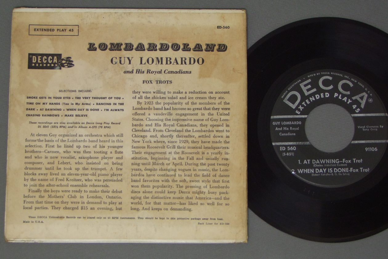 GUY LOMBARDO/LOMBARDOLAND ED560 製造国:米国盤 / Media:7inch外観:VG+盤の状態:EX- 価格(税込):¥770 送料 7inch:定形外郵便 360円~LP:定形外郵便 660円~送料は、注文の最終画面で確認頂けます。 > > GUY LOMBARDO/LOMBARDOLAND 外観 (VG+)特記事項:背に日焼けやスレ。上下ヘリ共にレコード取り出し口側に割れが少し。表ジャケはスレに一部着色補修。見開きにシミ。裏ジャケは日焼け大です。外観VG+の共通説明:ダメージやや有り。シミ、ヨゴレ、スレなど多少~やや多め。 盤の状態 (EX-)特記事項:薄いスリキズ・細かい表面スレ軽くある感じ。全体的には殆どが軽微なものの様子です。盤EX-の共通説明:盤面のスリキズが多少有り。音に出そうなものは殆ど無いように見える~さほど気にならないぐらいの軽いプチ数カ所程度。 Tweet それぞれの画像をクリックすると、大きい写真が見られます こちらの商品もお勧めです 1,320円 EARL HINES / PLAYS DUKE ELLINGTON VOL3 2,200円 SANDRRO CERINO ACTION QUARTET / TOM THUMB IN THE MAGIC CASTLE 1,100円 BENNY CARTER / BENNY CARTER 1943-46 770円 RED RICHARDS / I`M SHOOTING HIGH 1,980円 MICHEL LEGLAND / AT SHELLY`S MANNE-HOLE 770円 BUDDY DEFRANCO FEATURING GORDIE FLEMING / WATERBED 1,650円 BOB SCOBEY`S FRISCO JAZZ BAND / BEAUTY AND THE BEAT 1,210円 BUTCH THOMPSON AND CHET ERY / MR. JELLY ROLLS ON AUTOGRAPHEDサイン付