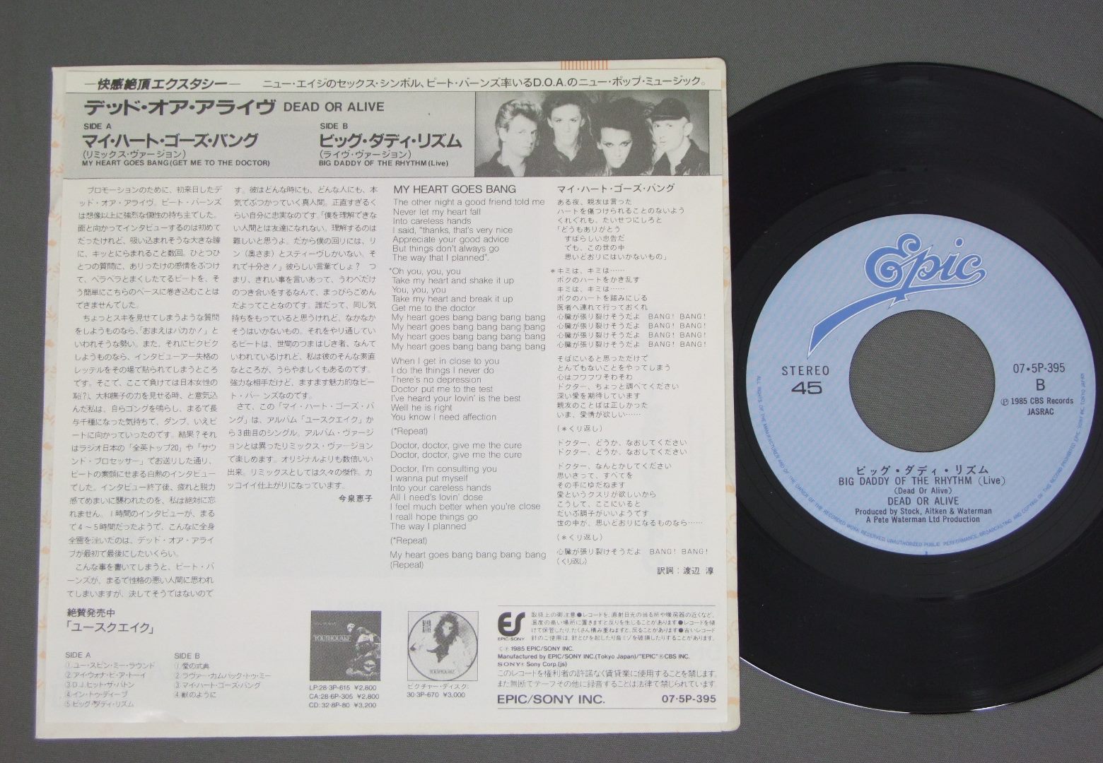 DEAD OR ALIVEデッドオアアライヴ/MY HEART GOES BANGマイ・ハート・ゴーズ・バング 07 5P395 製造国:日本盤 / Media:7inch外観:EX盤の状態:EX+ 価格(税込):¥1,100(売約済) 送料 7inch:定形外郵便 360円~LP:定形外郵便 660円~送料は、注文の最終画面で確認頂けます。 > > DEAD OR ALIVE/MY HEART GOES BANG 外観 (EX)特記事項:特記事項無し。コンディション・リストを参照。外観EXの共通説明:ダメージが限定的。中古品としては保存状態がよい方。シミ、ヨゴレ、スレ 少し~軽度。 盤の状態 (EX+)特記事項:特記事項無し。コンディション・リストを参照。盤EX+の共通説明:盤面の極薄いスリキズ、スレ少し程度 音に出そうなものは無いように見える(極軽微なソフトティック音は除く)。 Tweet それぞれの画像をクリックすると、大きい写真が見られます こちらの商品もお勧めです 1,320円 KEVIN ROWL & DEXYS MIDNIGHT RUNNERSテキシーズ・ミッドナイト・ランナーズ / TOO-RYE-AY女の泪はワザモンだ!! 1,320円 CULTURE CLUBカルチャー・クラブ / COLOUR BY NUMBERSカラー・バイ・ナンバーズ 440円 TUBESチューブス / OUTSIDE INSIDEアウトサイド・インサイド 1,210円 HARDCHOIRハードクワイア / HARDCHOIR華麗なる戦慄 770円 CULTURE CLUB / KISSING TO BE CLEVER 770円 ADAM AND THE ANTS / KINGS OF THE WILD FRONTIER 1,210円 ULTRAVOXウルトラヴォックス / NEW EUROPEANS新欧州人 1,320円 ADAM AND THE ANTSアダム&ジ・アンツ / KINGS OF THE WILD FRONTIERアダムの王国