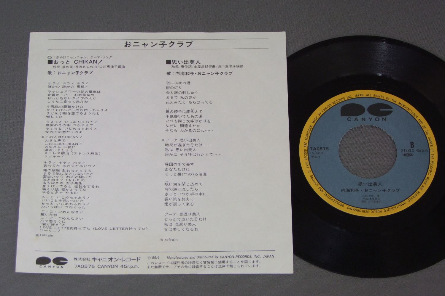 ONYANKO CLUBおニャン子クラブ/ OH ! CHIKANテレビ「夕やけニャンニャン」おっとCHIKAN! 7A0575 製造国:日本盤 / Media:7inch外観:EX盤の状態:EX 価格(税込):¥440 送料 7inch:定形外郵便 360円~LP:定形外郵便 660円~送料は、注文の最終画面で確認頂けます。 > > ONYANKO CLUB/ OH ! CHIKAN 外観 (EX)特記事項:特記なし。外観EXの共通説明:ダメージが限定的。中古品としては保存状態がよい方。シミ、ヨゴレ、スレ 少し~軽度。 盤の状態 (EX)特記事項:薄いスリキズ・スレ軽くある感じ。一見してきれいな印象です。盤EXの共通説明:盤面のスリキズが薄いものが少し~軽度 音に出そうなものは無いように見える(軽微なソフトティック音は除く)。 Tweet それぞれの画像をクリックすると、大きい写真が見られます こちらの商品もお勧めです 1,320円 YOU HAYAMI早見優 / COLORFUL BOX 1,210円 YUKO TOMITAとみたゆう子 / CLASSICAL HEARTクラシカル・ハート 770円 NAOKO KAWAI河合奈保子 / TWILIGHT DREAM 880円 YUMI MORIO森尾 由美 / YOU & ME 1,210円 AKINA NAKAMORI中森明菜 / SILENT LOVE 880円 MAKO ISHINO石野真子 / HOHOEMI微笑 440円 ERI E-AREA新田恵利 / ERI E-AREA 440円 YOU HAYAMI早見優 / MUSICミュージック