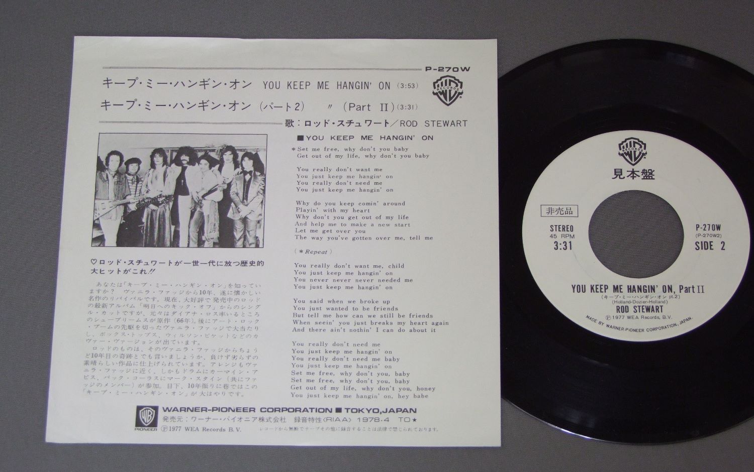 ROD STEWARTロッド・スチュワート/YOU KEEP ME HANGIN` ON WLPキープ・ミー・ハンギン・オン P270W 製造国:日本盤 / Media:7inch外観:EX盤の状態:EX+ 価格(税込):¥550(売約済) 送料 7inch:定形外郵便 360円~LP:定形外郵便 660円~送料は、注文の最終画面で確認頂けます。 > > ROD STEWART/YOU KEEP ME HANGIN` ON WLP 外観 (EX)特記事項:特記なし。外観EXの共通説明:ダメージが限定的。中古品としては保存状態がよい方。シミ、ヨゴレ、スレ 少し~軽度。 盤の状態 (EX+)特記事項:極薄いスリキズ・スレ少し。一見してきれいな状態です。盤EX+の共通説明:盤面の極薄いスリキズ、スレ少し程度 音に出そうなものは無いように見える(極軽微なソフトティック音は除く)。 その他: 白見本盤 Tweet それぞれの画像をクリックすると、大きい写真が見られます こちらの商品もお勧めです 1,320円 ROD STEWART / SHOT OF RHYTHM & BLUESブルース・パワー65-66 1,210円 ROD STEWARTロッド・スチュワート / BLONDES HAVE MORE FUNスーパースターはブロンドがお好き 550円 ROD STEWARTロッド・スチュワート / BLONDES HAVE MORE FUNスーパースターはブロンドがお好き 1,320円 ROD STEWARTロッド・スチュワート / ATLANTIC CROSSINGアトランティック・クロッシング