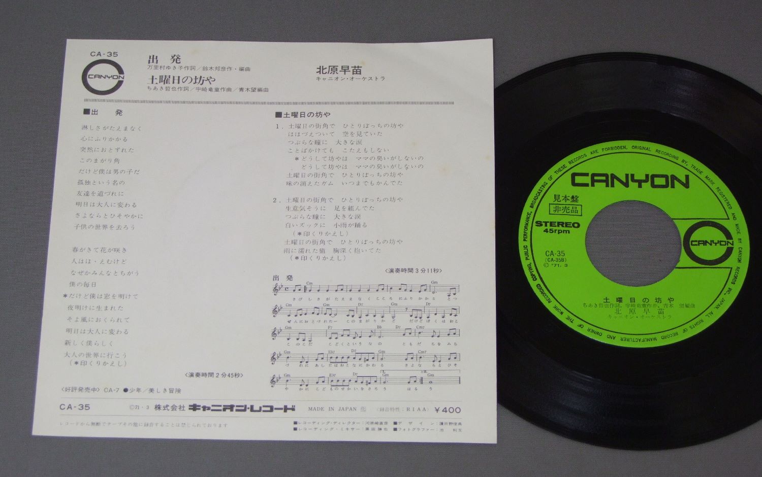 北原早苗/出発 CA35 製造国:日本盤 / Media:7inch外観:EX-盤の状態:EX 価格(税込):¥524(売約済) 送料 7inch:定形外郵便 360円~LP:定形外郵便 660円~送料は、注文の最終画面で確認頂けます。 > > / 外観 (EX-)特記事項:表裏共にシミ有り外観EX-の共通説明:ダメージ軽度~多少。 中古品としては普通の状態。シミ、ヨゴレ、スレなど軽く~多少。 盤の状態 (EX)特記事項:薄いスリキズ・スレ軽くある感じ。軽微なものの様子です。盤EXの共通説明:盤面のスリキズが薄いものが少し~軽度 音に出そうなものは無いように見える(軽微なソフトティック音は除く)。 その他:見本盤 Tweet それぞれの画像をクリックすると、大きい写真が見られます こちらの商品もお勧めです 1,320円 CHA-CHAチャ・チャ / HITOMI NO-NAKA-NO TAKARAJIMA瞳の中の宝島 1,210円 TULIPチューリップ / 10TH ODYSSEY 1,980円 MASAKO OHYA大屋政子 / LIVE CONCERTライブコンサート 1,210円 MIYUKI NAKAJIMA中島みゆき / OKAERINASAIおかえりなさい 550円 MIKI ASAKURA麻倉未稀 / ROMANCEロマンス 770円 NOA HORIGUCHI堀ロノア / SHOKAN-BAKO書簡箱 770円 KUMIKO YAMASHITA山下久美子 / AME NO H IHA IENIITE雨の日は家にいて 770円 5 BALLOONS五つの赤い風船 / GAME OVERゲームは終わり