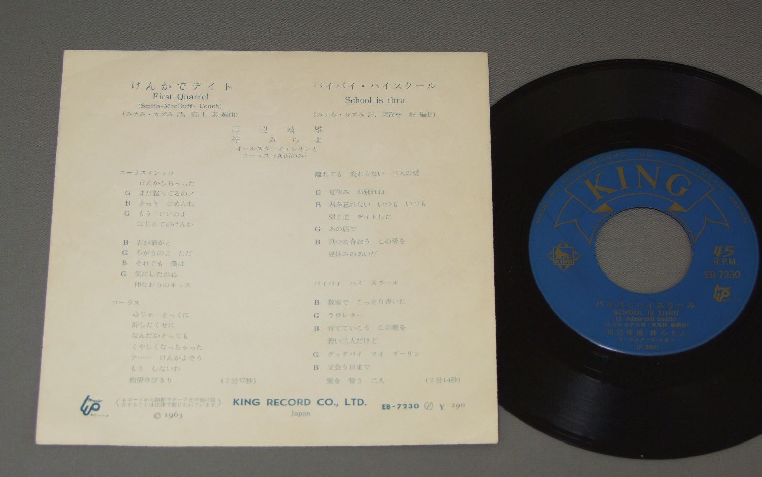 YASUO TANABE田辺靖雄・梓みちよ/FIRST QUARRELけんかでデイト EB7230 製造国:日本盤 / Media:7inch外観:EX盤の状態:EX- 価格(税込):¥660(売約済) 送料 7inch:定形外郵便 360円~LP:定形外郵便 660円~送料は、注文の最終画面で確認頂けます。 > > YASUO TANABE/FIRST QUARREL 外観 (EX)特記事項:多少日焼け感有り。外観EXの共通説明:ダメージが限定的。中古品としては保存状態がよい方。シミ、ヨゴレ、スレ 少し~軽度。 盤の状態 (EX-)特記事項:薄いスリキズ・細かい表面スレ軽くある感じ。プチ出そうな所は少し、全体的には殆どが軽微なものの様子です。盤EX-の共通説明:盤面のスリキズが多少有り。音に出そうなものは殆ど無いように見える~さほど気にならないぐらいの軽いプチ数カ所程度。 Tweet それぞれの画像をクリックすると、大きい写真が見られます こちらの商品もお勧めです 770円 MIYUKI NAKAJIMA中島みゆき / OAKERINASAIおかえりなさい 770円 EPOエポ / PUMP ! PUMP ! 1,650円 MOMOE YAMAGUCHI山口百恵 / MOBIUS`S GAMEメビウス・ゲーム 440円 MUNEYUKI SATOHさとう宗幸 / AOBAJO KOIUTA青葉城恋歌 770円 HIROMI IWASAKI岩崎宏美 / HIKOUSEN飛行船 440円 KUWATA BAND桑田バンド / NIPPON NO ROCK BAND 1,210円 YUKO OTOMO大友裕子 / KIZUNA絆(きずな) 770円 TAKASHI SATOH佐藤隆 / I`VE BEEN WALKING