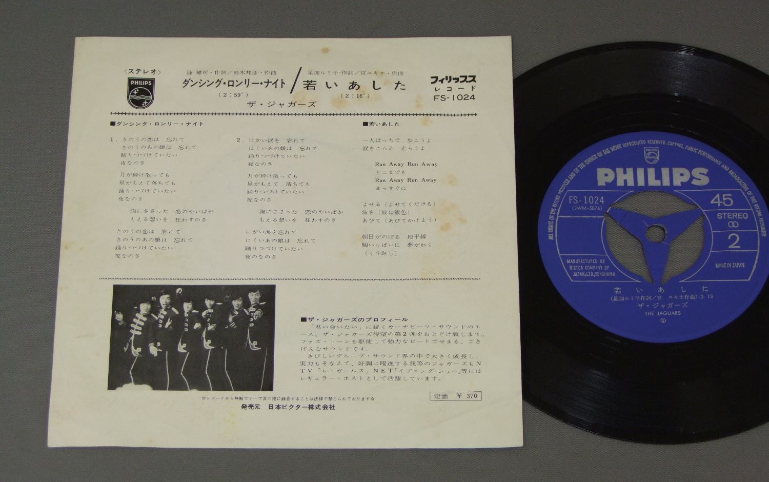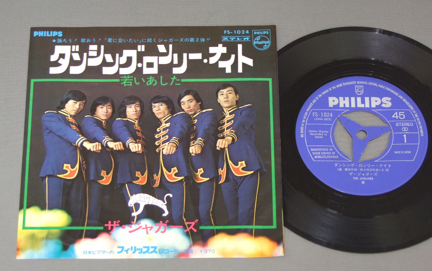 JAGUARSジャガーズ/DANCING LONELY NIGHTダンシング・ロンリー・ナイト FS1024 製造国:日本盤 / Media:7inch外観:VG+盤の状態:EX 価格(税込):¥440 送料 7inch:定形外郵便 360円~LP:定形外郵便 660円~送料は、注文の最終画面で確認頂けます。 > > JAGUARS/DANCING LONELY NIGHT 外観 (VG+)特記事項:裏側にシミ。表もシミが少し。外観VG+の共通説明:ダメージやや有り。シミ、ヨゴレ、スレなど多少~やや多め。 盤の状態 (EX)特記事項:薄いスリキズ・スレ軽くある感じ。殆どが軽微なものの様子です。盤EXの共通説明:盤面のスリキズが薄いものが少し~軽度 音に出そうなものは無いように見える(軽微なソフトティック音は除く)。 Tweet それぞれの画像をクリックすると、大きい写真が見られます こちらの商品もお勧めです 660円 YUZO KAYAMA加山雄三 / 15TH ANNIVERSARY加山雄三1976 武道館ライブ 3,850円 OXオックス / FIRST ALBUMファースト・アルバム 550円 TIGERSタイガース / 10 YEARS ROMANCE十年ロマンス 1,320円 TAKESHI TERAUCHI & THE BUNNYS寺内タケシとザ・バニーズ / LET`S GO CLASSICSレッツ・ゴー運命 770円 TIGERSタイガース / TIGERS 1982タイガース 1982 1,210円 TIGERSタイガース / TIGERS 1982十年ロマンス 660円 YUZO KAYAMA加山雄三 / AISURUTOKIHA IMA愛する時は今 1,210円 WILD ONES加瀬邦彦とワイルドワンズ / ON THE BEACH`82オン・ザ・ビーチ`82