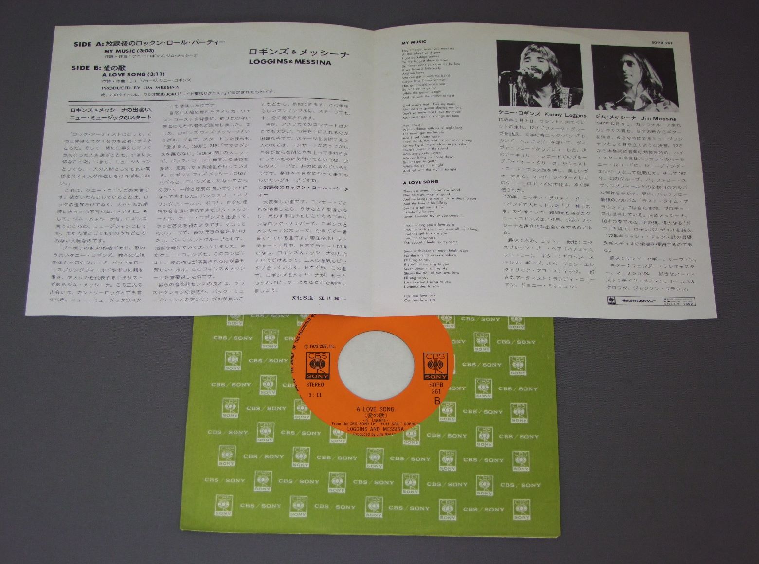 LOGGINS & MESSINAロギンズ&メッシーナ/MY MUSIC放課後のロックン ロールパーティ SOPB261 製造国:日本盤 / Media:7inch外観:EX盤の状態:EX+ 価格(税込):¥990(売約済) 送料 7inch:定形外郵便 360円~LP:定形外郵便 660円~送料は、注文の最終画面で確認頂けます。 > > LOGGINS & MESSINA/MY MUSIC 外観 (EX)特記事項:特記なし。外観EXの共通説明:ダメージが限定的。中古品としては保存状態がよい方。シミ、ヨゴレ、スレ 少し~軽度。 盤の状態 (EX+)特記事項:極薄いスリキズ・スレ少し。一見してきれいな状態です。盤EX+の共通説明:盤面の極薄いスリキズ、スレ少し程度 音に出そうなものは無いように見える(極軽微なソフトティック音は除く)。 Tweet それぞれの画像をクリックすると、大きい写真が見られます こちらの商品もお勧めです 1,320円 QUARTER FLASHクオーター・フラッシュ / QUARTER FLASHミッドナイト・フラッシュ 770円 STYXスティクス / BEST OF STYXレディ ( スティクス・ベスト ) 1,320円 FIREFALLファイアフォール / LUNA SEA遥かなるルナ・シー 770円 STYXスティクス / CORNERSTONEコーナーストーン 990円 SANTANAサンタナ / AMIGOSアミーゴ !(同胞) 880円 MARC TANNER BANDマーク・タナー・バンド / NO ESCAPEノー・エスケープ 770円 TOTO / ISOLATION + STICKERSアイソレーション 1,320円 PARRIDGE FAMILYパートリッジ・ファミリー / SOUND MAGAZINE夢見るデビット