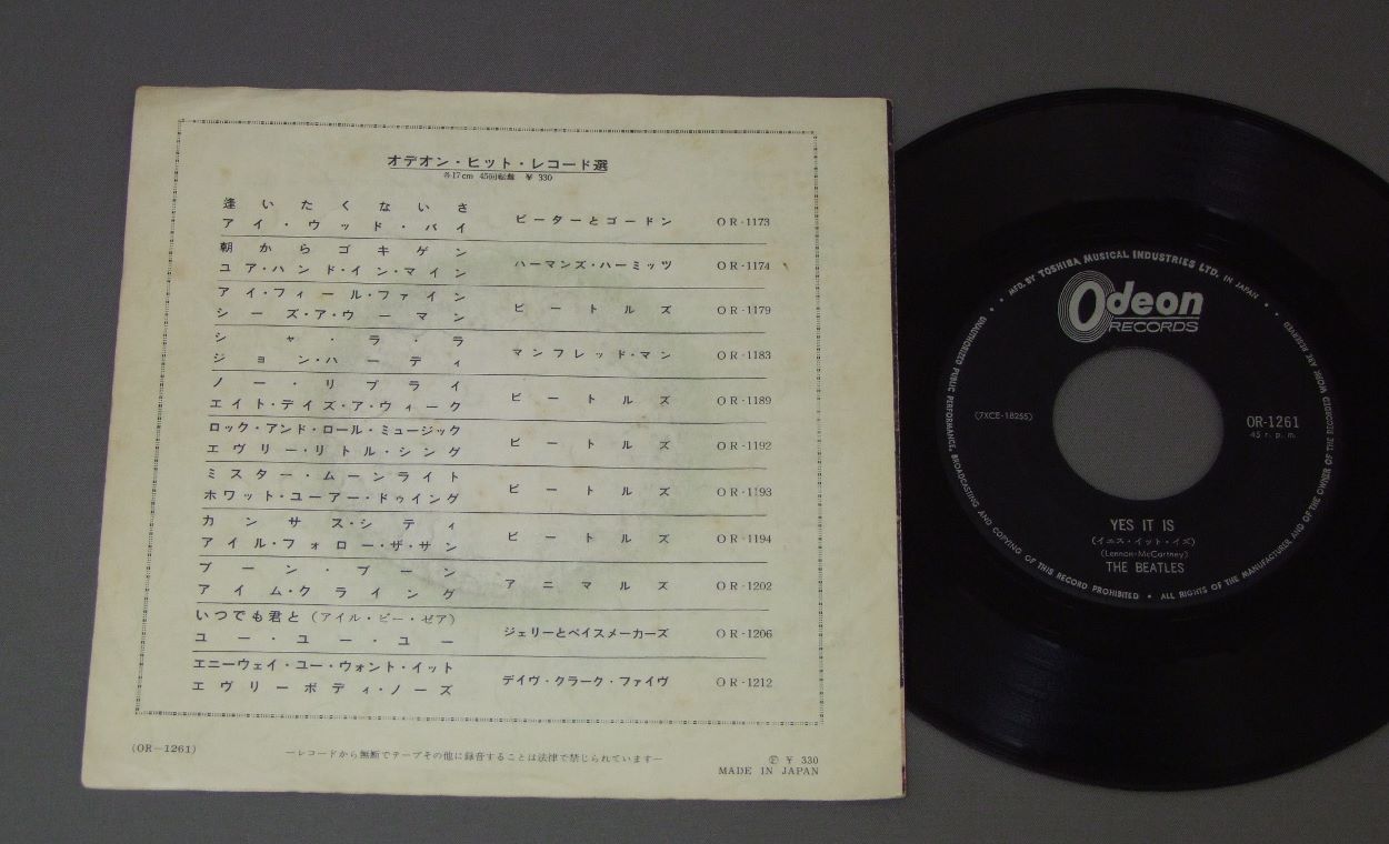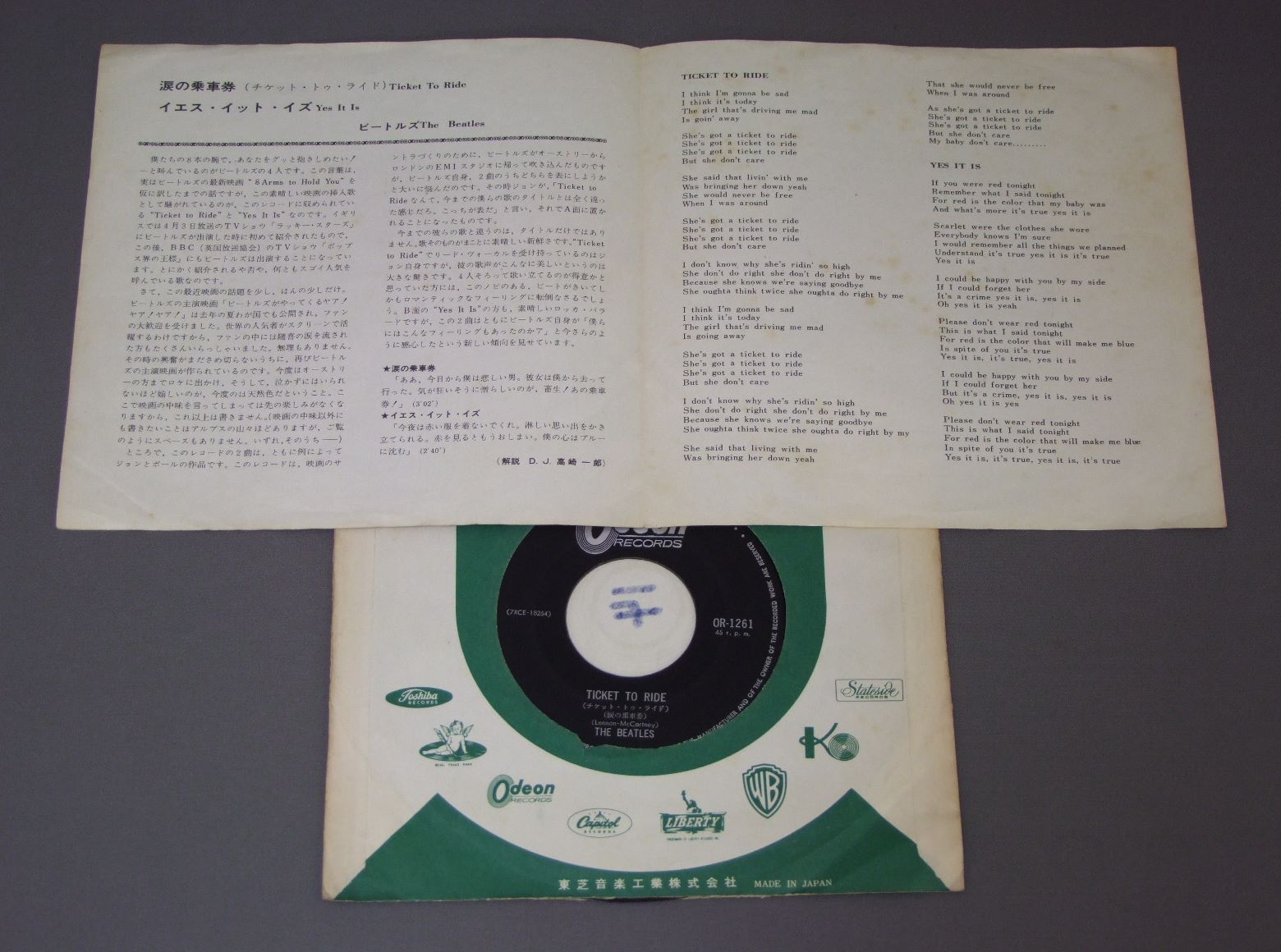 BEATLESビートルズ/TICKET TO RIDEチケット・トゥ・ライド(涙の乗車券)オデオン盤 OR1261 製造国:日本盤 / Media:7inch外観:VG+盤の状態:EX- 価格(税込):¥990(売約済) 送料 7inch:定形外郵便 360円~LP:定形外郵便 660円~送料は、注文の最終画面で確認頂けます。 > > BEATLES/TICKET TO RIDE 外観 (VG+)特記事項:ヨレ多いです。よごれやシミも多め。外観VG+の共通説明:ダメージやや有り。シミ、ヨゴレ、スレなど多少~やや多め。 盤の状態 (EX-)特記事項:薄いスリキズ・細かい表面スレ軽くある感じ。全体的には殆どが軽微なものの様子です。盤EX-の共通説明:盤面のスリキズが多少有り。音に出そうなものは殆ど無いように見える~さほど気にならないぐらいの軽いプチ数カ所程度。 Tweet それぞれの画像をクリックすると、大きい写真が見られます こちらの商品もお勧めです 1,540円 WINGSポール・マッカートニーとウイングス / LONDON TOWN 770円 PAUL MCCARTNEY & WINGSポール・マッカートニー & ウイングス / WINGS AT THE SPEED OF SOUNDスピード・オヴ・サウンド 1,650円 GEORGE HARRISONジョージ・ハリスン / DARK HORSEダーク・ホース 1,210円 WINGSウィングス / WINGS OVER AMERICAウィングスU.S.A ライヴ 1,320円 WINGSウイングス / WINGS OVER AMERICAウイングス U.S.A.ライヴ!! 1,650円 GEORGE HARRISONジョージ・ハリソン / EXTRA TEXTUREジョージ・ハリソン帝国 770円 WINGSウイングス / AT THE SPEED OF SOUNDスピード・オブ・サウンド 770円 JOHN LENNONジョン・レノン / PLASTIC ONO BANDプラスティック・オノ・バンド