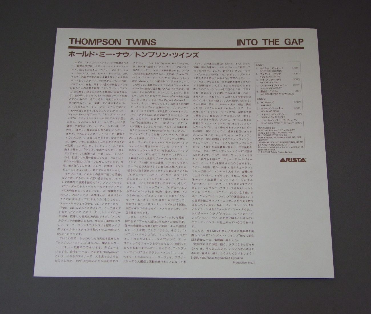 THOMPSON TWINSトンプソン・ツインズ/INTO THE GAPホールド・ミー・ナウ 25RS216 製造国:日本盤 / Media:LP外観:EX盤の状態:EX+帯:EX 価格(税込):¥770(売約済) 送料 7inch:定形外郵便 360円~LP:定形外郵便 660円~送料は、注文の最終画面で確認頂けます。 > > THOMPSON TWINS/INTO THE GAP 外観 (EX)特記事項:特記なし。外観EXの共通説明:ダメージが限定的。中古品としては保存状態がよい方。シミ、ヨゴレ、スレ 少し~軽度。 盤の状態 (EX+)特記事項:極薄いスリキズ・スレ少し。一見してきれいな状態です。盤EX+の共通説明:盤面の極薄いスリキズ、スレ少し程度 音に出そうなものは無いように見える(極軽微なソフトティック音は除く)。 帯の状態 (EX):特記なし。 Tweet それぞれの画像をクリックすると、大きい写真が見られます こちらの商品もお勧めです 1,210円 OXOオクソ / 1st ALBUMオクソ 770円 NENAネーナ / ? (FRAGEZEICHEN)? (クエスチョンマーク) 440円 TEN TENテン・テン / WALK ONウォーク・オン 1,320円 TAZMANIAN DEVILSタズマニアン・デヴィルズ / TAZMANIAN DEVILSアメリカン・ドリームを探して 440円 HIPSWAYヒップスウェイ / HIPSWAYヒップスウェイ 550円 CORBIN HANNER BANDコーバン・ハナー・バンド / SON OF AMERICAサン・オブ・アメリカ 440円 GLASS TIGERグラス・タイガー / DIAMOND SUNダイヤモンド・サン 1,320円 QUARTERFLASHクウォーターフラッシュ / QUARTERFLASHミッドナイト・フラッシュ