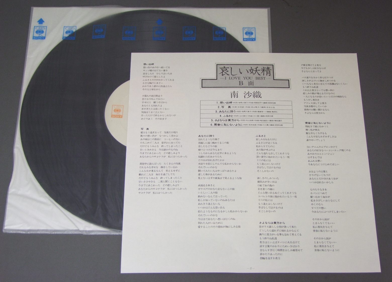 南沙織/哀しい妖精 25AH103 製造国:日本盤 / Media:LP外観:EX+盤の状態:EX帯:EX 価格(税込):¥1,210(売約済) 送料 7inch:定形外郵便 360円~LP:定形外郵便 660円~送料は、注文の最終画面で確認頂けます。 > > / 外観 (EX+)特記事項:特記なし。外観EX+の共通説明:中古としては美品、一見してきれいでダメージが軽微。シミ、ヨゴレ、スレ有っても僅か~少し。 盤の状態 (EX)特記事項:薄いスリキズ・スレ軽くある感じ。殆どが軽微なものの様子です。盤EXの共通説明:盤面のスリキズが薄いものが少し~軽度 音に出そうなものは無いように見える(軽微なソフトティック音は除く)。 帯の状態 (EX):特記なし。 Tweet それぞれの画像をクリックすると、大きい写真が見られます こちらの商品もお勧めです 715円 TAKURO YOSHIDA吉田拓郎 / OHINARU HITO大いなる人 770円 TAKURO YOSHIDAよしだたくろう / NINGEN-NANTE人間なんて 1,320円 MISAKO HONJOH本城美沙子 / FORESIGHT 990円 MIZUKI OHURA大浦みずき / NIGHT & DAYナイト&デイ 770円 KUMIKO YAMASHITA山下久美子 / DANCIN`IN THE KITCHEN 1,210円 TAKURO YOSHIDAよしだたくろう / HELLO !元気です。 1,320円 ALFEEアルフィー / FOR YOUR LOVE 990円 HIROMI IWASAKI岩崎ひろみ / YUUGUREKARA夕暮れからひとり