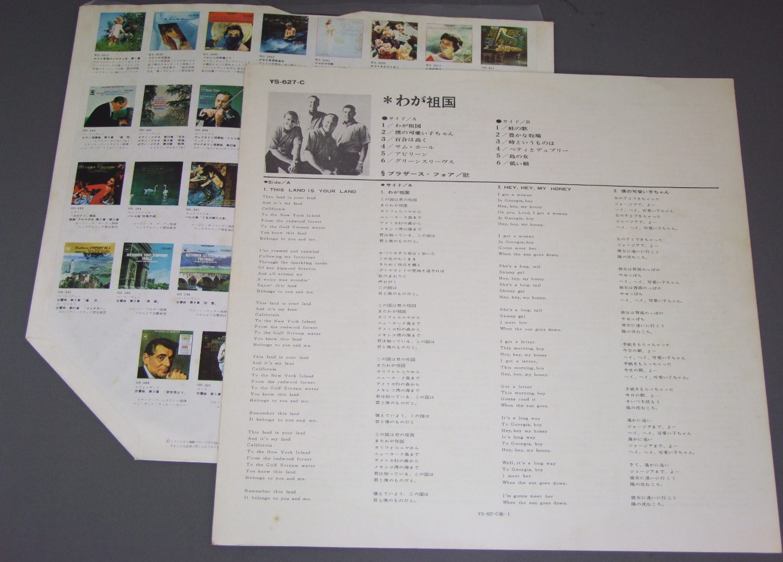 BROTHERS FOURブラザース・フォア/THIS LAND IS YOUR LANDわが祖国 ペラジャケ YS627C 製造国:日本盤 / Media:LP外観:EX盤の状態:EX 価格(税込):¥1,210(売約済) 送料 7inch:定形外郵便 360円~LP:定形外郵便 660円~送料は、注文の最終画面で確認頂けます。 > > BROTHERS FOUR/THIS LAND IS YOUR LAND 外観 (EX)特記事項:特記なし。外観EXの共通説明:ダメージが限定的。中古品としては保存状態がよい方。シミ、ヨゴレ、スレ 少し~軽度。 盤の状態 (EX)特記事項:薄いスリキズ・スレ軽くある感じ。軽微なものの様子です。盤EXの共通説明:盤面のスリキズが薄いものが少し~軽度 音に出そうなものは無いように見える(軽微なソフトティック音は除く)。 Tweet それぞれの画像をクリックすると、大きい写真が見られます こちらの商品もお勧めです 770円 NITTY GRITTY DIRT BANDニッティー・グリッティー・ダート・バンド / UNCLE CHARLIE & HIS DOG TEDDYアンクル・チャーリーと愛犬テディー 990円 KITTY WELLSキティ・ウェルズ / DUST ON THE BIBLEダスト・オン・ザ・バイブル 770円 BROTHERS FOURブラザース・フォア / HONEY WIND BLOWSビッグ・フォーク・ヒッツ 第3集 1,320円 JOAN BAEZジョーン・バエズ / GULF WINDSガルフ・ウィンズ 770円 PETER PAUL&MARYピーター・ポール&マリー / LATE AGAINレイト・アゲイン 770円 NITTY GRITTY DIRT BANDニッティー・グリッティー・ダート・バンド / STARS&STRIPES FOREVER星条旗よ永遠なれ! 990円 BANJO BARONSバンジョー・バロンズ / IT`S A FOLK FOLK FOLK FOLK WORLDバンジョー. フォーク・ソングの世界 ペラジャケ 990円 PETER PAUL & MARYピーター・ポール&マリー / IN CONCERT