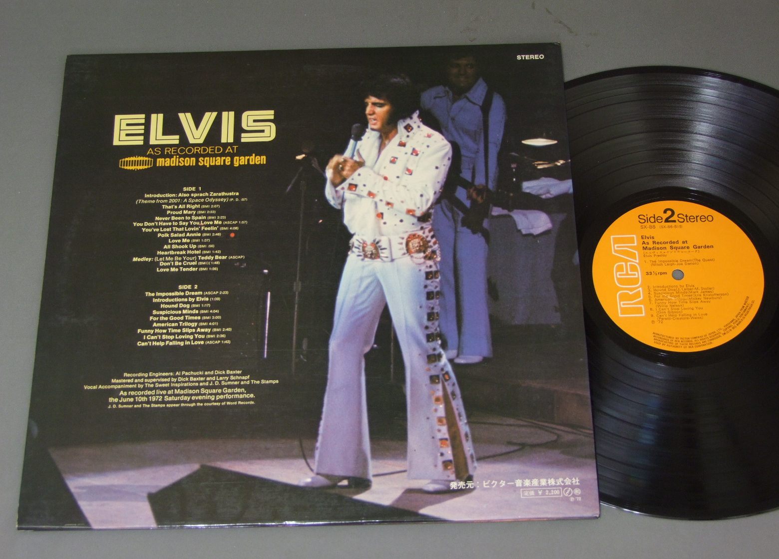 ELVIS PRESLEY/ELVIS AS RECORDED AT MADISON SQUARE GARDENエルヴィス・イン・ニューヨーク SX86 製造国:日本盤 / Media:LP外観:EX-盤の状態:EX- 価格(税込):¥1,320(売約済) 送料 7inch:定形外郵便 360円~LP:定形外郵便 660円~送料は、注文の最終画面で確認頂けます。 > > ELVIS PRESLEY/ELVIS AS RECORDED AT MADISON SQUARE GARDEN 外観 (EX-)特記事項:ジャケ表面に薄いスレ多いです。見開きにはがれ小有り。外観EX-の共通説明:ダメージ軽度~多少。 中古品としては普通の状態。シミ、ヨゴレ、スレなど軽く~多少。 盤の状態 (EX-)特記事項:薄いスリキズ・細かい表面スレ軽くある感じです。プチ出そうな所は少し。軽微なものが中心の様子です。盤EX-の共通説明:盤面のスリキズが多少有り。音に出そうなものは殆ど無いように見える~さほど気にならないぐらいの軽いプチ数カ所程度。 Tweet それぞれの画像をクリックすると、大きい写真が見られます こちらの商品もお勧めです 770円 ELVIS PRESLEYエルヴィス・プレスリー / ELVIS-THAT`S THE WAY IT ISこの胸のときめきを -MGM映画 エルヴィス・オン・ステージ 主題歌集 440円 VENTURESベンチャーズ / POPS IN JAPANポップス・イン・ジャパン 990円 RICK NELSONリック・ネルソン / ALBUM SEVEN BY RICKアルバム・セブン・バイ・リック 1,210円 VENTURES / BEST OF THE VENTURES vol.2 RED VINYL赤盤 1,210円 ELVIS PRESLEY / ELVIS AS RECORDED AT MADISON SQUARE GARDENエルヴィス・イン・ニューヨーク 1,210円 ELVIS PRESLEY / IN PERSON AT THE INTERNATIONAL HOTEL LAS VEGAS.NEVADA 770円 VARIOUS ARTISTS / YESTERDAY`S HITSイエスタデイズ・ヒッツ 990円 VENTURESベンチャーズ / IN CHRISTMASイン・クリスマス