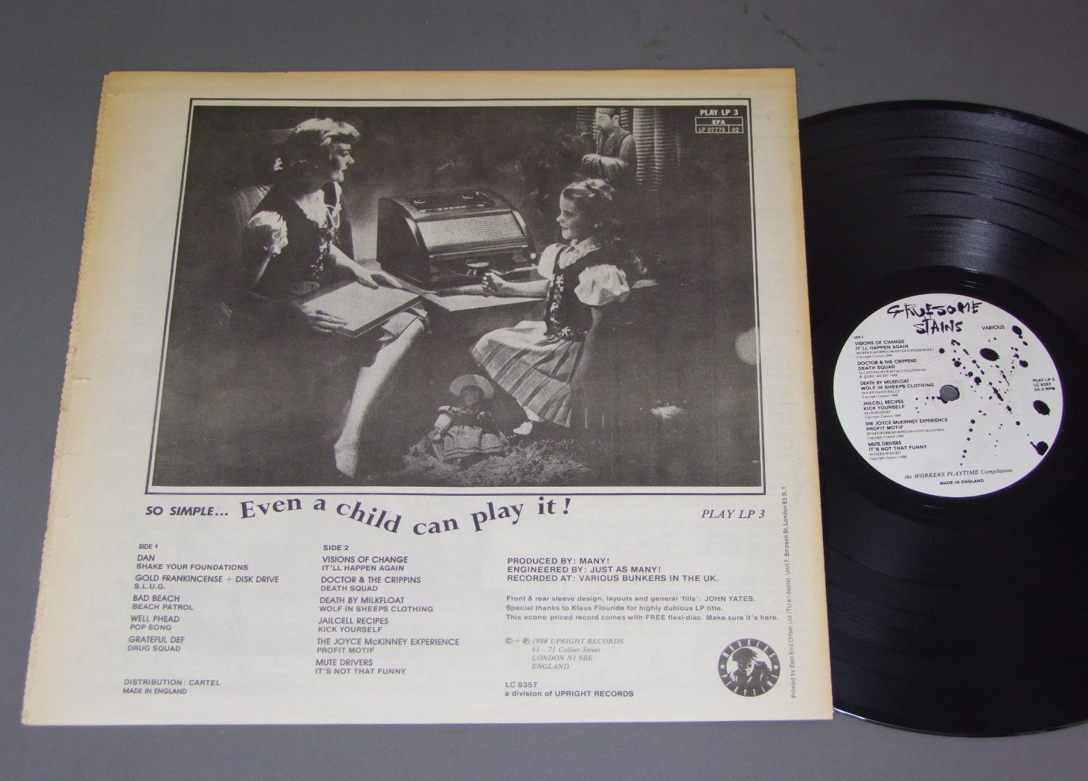 VARIOUS UK PANK GROUPS/GRUESOME STAINS 製造国:英国盤 / Media:LP盤の状態:EX+ 価格(税込):¥1,760(売約済) 送料 7inch:定形外郵便 360円~LP:定形外郵便 660円~送料は、注文の最終画面で確認頂けます。 > > VARIOUS UK PANK GROUPS/GRUESOME STAINS 外観 ()特記事項:新聞タイプ。ヨレはあまりない感じですが周辺部に日焼け有り。、外観の共通説明: 盤の状態 (EX+)特記事項:薄いスリキズ・スレ少し。一見してきれいな状態です。盤EX+の共通説明:盤面の極薄いスリキズ、スレ少し程度 音に出そうなものは無いように見える(極軽微なソフトティック音は除く)。 その他:おまけ7インチ・ソノシート付き。 Tweet それぞれの画像をクリックすると、大きい写真が見られます こちらの商品もお勧めです 770円 SIXTEEN TONS / HEADSHOT 1,980円 CONFLICT / TURNING REBELLION INTO MONEY 770円 DUKES / DUKES 2,750円 FRENZYフレンジー / HALL OF MIRRORSホール・オブ・ミラーズ 770円 NAME / DANGEROUS TIMES 1,650円 VARIOUS UK PUNK GROUPS / KIDS ARE UNITED 1,320円 RAPED EPLIEPTICS etc / COM STAINS OVER MY RECORD COLLECTION 1,320円 STRAY CATS / GONNA BALL