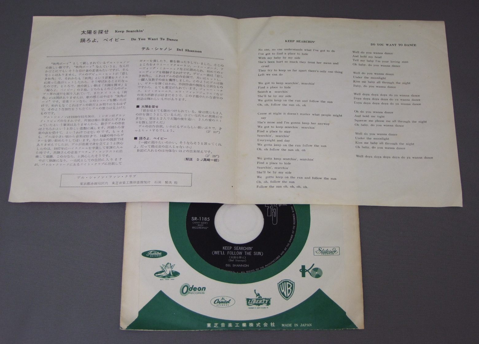 DEL SHANNONデル・シャノン/KEEP SEARCHIN`太陽を探せ SR1185 製造国:日本盤 / Media:7inch外観:EX-盤の状態:EX- 価格(税込):¥440 送料 7inch:定形外郵便 360円~LP:定形外郵便 660円~送料は、注文の最終画面で確認頂けます。 レコード検索 > SWING/BIG BAND > DEL SHANNON/KEEP SEARCHIN` 外観 (EX-)特記事項:表ジャケ上ヘリ中央に短い切れ。見開きや裏ジャケに薄いシミが少し有り。外観EX-の共通説明:ダメージ軽度~多少。 中古品としては普通の状態。シミ、ヨゴレ、スレなど軽く~多少。 盤の状態 (EX-)特記事項:薄いスリキズ・細かい表面スレ軽くある感じ。全体的には殆どが軽微なものの様子です。盤EX-の共通説明:盤面のスリキズが多少有り。音に出そうなものは殆ど無いように見える~さほど気にならないぐらいの軽いプチ数カ所程度。 Tweet それぞれの画像をクリックすると、大きい写真が見られます こちらの商品もお勧めです 1,320円 ELVIS PRESLEY / THAT`S THE WAY IT ISこの胸のときめきを 770円 ELVIS PRESLEYエルヴィス・プレスリー / ELVIS VOL2 A LEGENDARY PERFORMER + BOOKLETエルヴィス・プレスリーの歴史 VOL2 1,210円 ELVIS PRESLEY / ELVIS IN PERSONプレスリー・イン・パーソン 770円 RICK NELSONリック・ネルソン / ALBUM SEVEN BY RICKアルバム・セブン・リック 990円 ELVISエルヴィス / THIS IS ELVIS-SELECTIONS FROM THE ORIGINAL MOTION PICUTRE SOUNDTRACK映画 THIS IS ELVIS オリジナル・サウンドトラック 880円 LETTERMENレターメン / LOVE BOOK愛の世界 880円 ELVISエルヴィス・プレスリー / THAT`S THE WAY IT ISこの胸のときめきを/映画「エルヴィス・オン・ステージ」主題歌集 880円 VENTURESベンチャーズ / JOYジョイ -ディスカバー・クラシック-