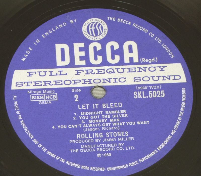 ROLLING STONES/LET IT BLEED STEREO SKL5023 製造国:英国盤 / Media:LPMatrix:4W/1/UG | 4W/1/BG外観:EX-盤の状態:VG+ 価格(税込):¥11,000(売約済) 送料 7inch:定形外郵便 360円~LP:定形外郵便 660円~送料は、注文の最終画面で確認頂けます。 レコード検索 > 全てのジャンル > ROLLING STONES/LET IT BLEED STEREO 外観 (EX-)特記事項:角スレ多少有り。表ジャケは全体的にコーティングのヨレシワも少なく、スレやスリキズも薄い感じ。裏ジャケのよごれも経年風な感じのものが中心。背中央に抜け。オリジナルインナーはヨレは多少有りますが、抜けはなく、全体的にしっかりした感じ残っています。外観EX-の共通説明:ダメージ軽度~多少。 中古品としては普通の状態。シミ、ヨゴレ、スレなど軽く~多少。 盤の状態 (VG+)特記事項:薄いスリキズ、スレ多少。軽微なものが中心です。B面の後半に触感のある線キズ有り、B4の最初静かな所は周期的プチが有りますが、音が大きくなれば気にならないぐらい。他も曲間などを中心に聴いてみましたが、チリプチ軽度で音自体もしっかりクリアーになっているようでした。盤VG+の共通説明:盤面にスリキズが多少~やや有り、音に出そうなものも多少ある。 その他:B4最初はVG+他はEX-に近い感じです Tweet それぞれの画像をクリックすると、大きい写真が見られます こちらの商品もお勧めです 2,750円 ROLLING STONES / EMOTIONAL RESCUE + POSTEREMOTIONAL RESCUE ポスター付