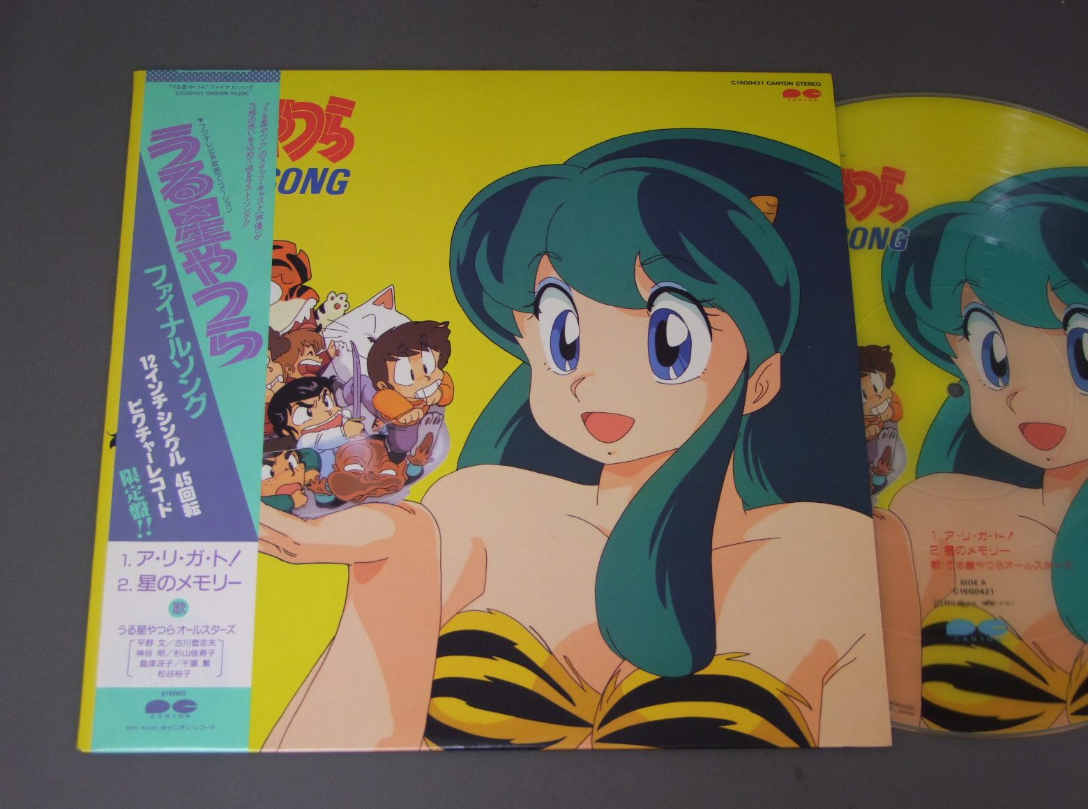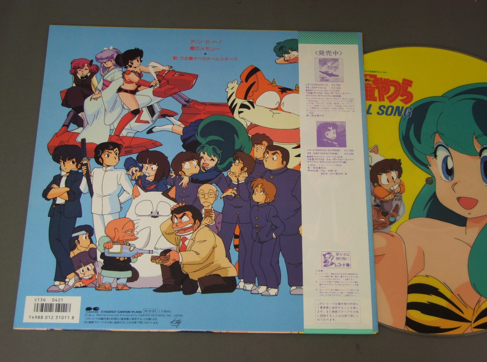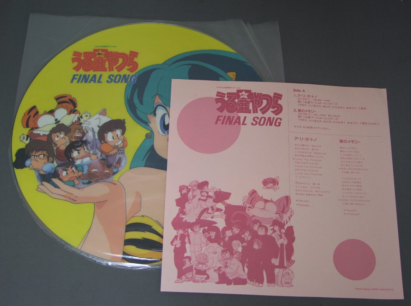 URUSEI YATSURAうる星やつらオールスターズ/FINAL SONG PIC DISCアニメ「うる星やつら」ファイナルソング C15G0421 製造国:日本盤 / Media:12inch外観:EX+盤の状態:EX帯:EX+ 価格(税込):¥1,650(売約済) 送料 7inch:定形外郵便 360円~LP:定形外郵便 660円~送料は、注文の最終画面で確認頂けます。 > > URUSEI YATSURA/FINAL SONG PIC DISC 外観 (EX+)特記事項:特記なし。外観EX+の共通説明:中古としては美品、一見してきれいでダメージが軽微。シミ、ヨゴレ、スレ有っても僅か~少し。 盤の状態 (EX)特記事項:ソリ軽く有りますが、トレース可能です。盤EXの共通説明:盤面のスリキズが薄いものが少し~軽度 音に出そうなものは無いように見える(軽微なソフトティック音は除く)。 帯の状態 (EX+):特記なし。 Tweet それぞれの画像をクリックすると、大きい写真が見られます こちらの商品もお勧めです 1,210円 ANIME MACROSSマクロス / MISS DJテレビドラマ篇 1,210円 ANIME AONI PPRODUCTION青二プロ / VOICE VOICE VOICE10周年記念フェスティバル・ライヴ 1,210円 SPACE BATTLE SHIP YAMATO宇宙戦艦ヤマト / SOUNDTRACK GOODBY YAMATOさらば宇宙戦艦ヤマト (愛の戦士たちドラマ編) 770円 SPACE RUNAWAY IDEON伝説巨神イデオン / MOVIE SOUND TRACK映画イデオン 550円 CRUSHER JOEクラッシャージョウ / ORIGINAL SOUND TRACKドラマ篇 1,320円 ANIME SPACE PIRATE CAPTAIN HARLOCK宇宙海賊 キャプテン・ハーロック / TV SOUNDTRACK交響組曲 テレビ・サウンドトラック盤 1,650円 CYBORG 009サイボーグ009 / TV SERIES VOL1Xの挑戦 770円 CRUSHER JOEクラッシャージョウ / SOUND TRACK音楽篇