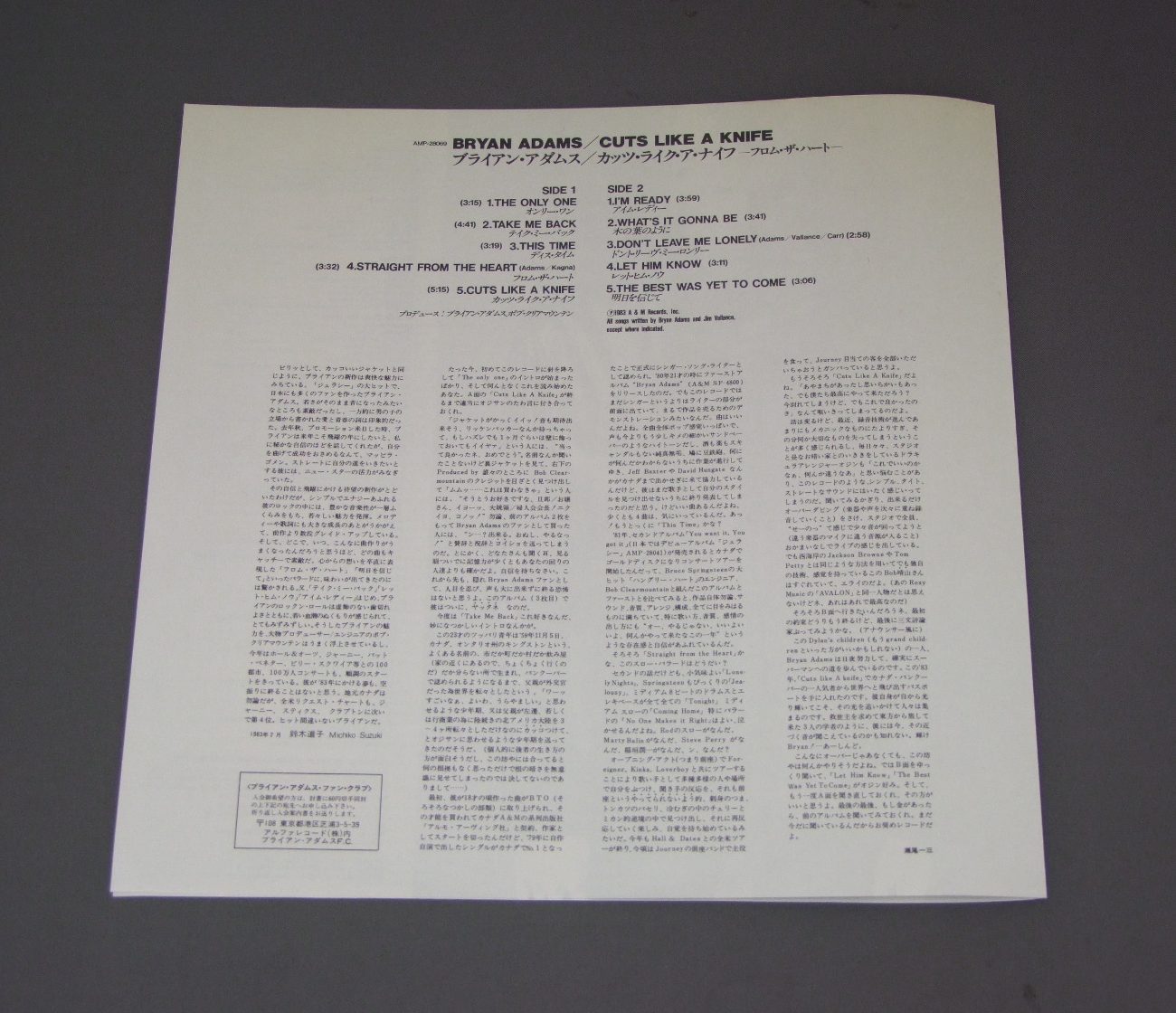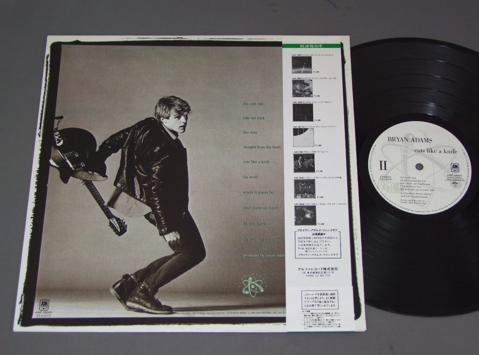 BRYAN ADAMSブライアン・アダムス/CUTS LIKE A KNIFEカッツ・ライク・ア・ナイフ AMP28069 製造国:日本盤 / Media:LP外観:EX盤の状態:EX+帯:EX 価格(税込):¥550(売約済) 送料 7inch:定形外郵便 360円~LP:定形外郵便 660円~送料は、注文の最終画面で確認頂けます。 > > BRYAN ADAMS/CUTS LIKE A KNIFE 外観 (EX)特記事項:特記なし。外観EXの共通説明:ダメージが限定的。中古品としては保存状態がよい方。シミ、ヨゴレ、スレ 少し~軽度。 盤の状態 (EX+)特記事項:薄いスリキズ・スレ少し。一見してきれいな状態です。盤EX+の共通説明:盤面の極薄いスリキズ、スレ少し程度 音に出そうなものは無いように見える(極軽微なソフトティック音は除く)。 帯の状態 (EX):特記なし。 Tweet それぞれの画像をクリックすると、大きい写真が見られます こちらの商品もお勧めです 660円 CULTURE CLUBカルチャー・クラブ / KISSING TO BE CLEVER 1,210円 GO WESTゴー・ウェスト / MORE BANGS & CRASHESモア・バン ! アンド・クラッシュ ! 1,320円 NENAネーナ / NENAロックバルーンは99 1,210円 OXOオクソ / 1st ALBUMオクソ 1,320円 QUARTERFLASHクウォーターフラッシュ / QUARTERFLASHミッドナイト・フラッシュ 770円 CHEAP TRICKチープ・トリック / AT BUDOKANAT 武道館 770円 NENAネーナ / ? (FRAGEZEICHEN)? (クエスチョンマーク) 550円 CORBIN HANNER BANDコーバン・ハナー・バンド / SON OF AMERICAサン・オブ・アメリカ