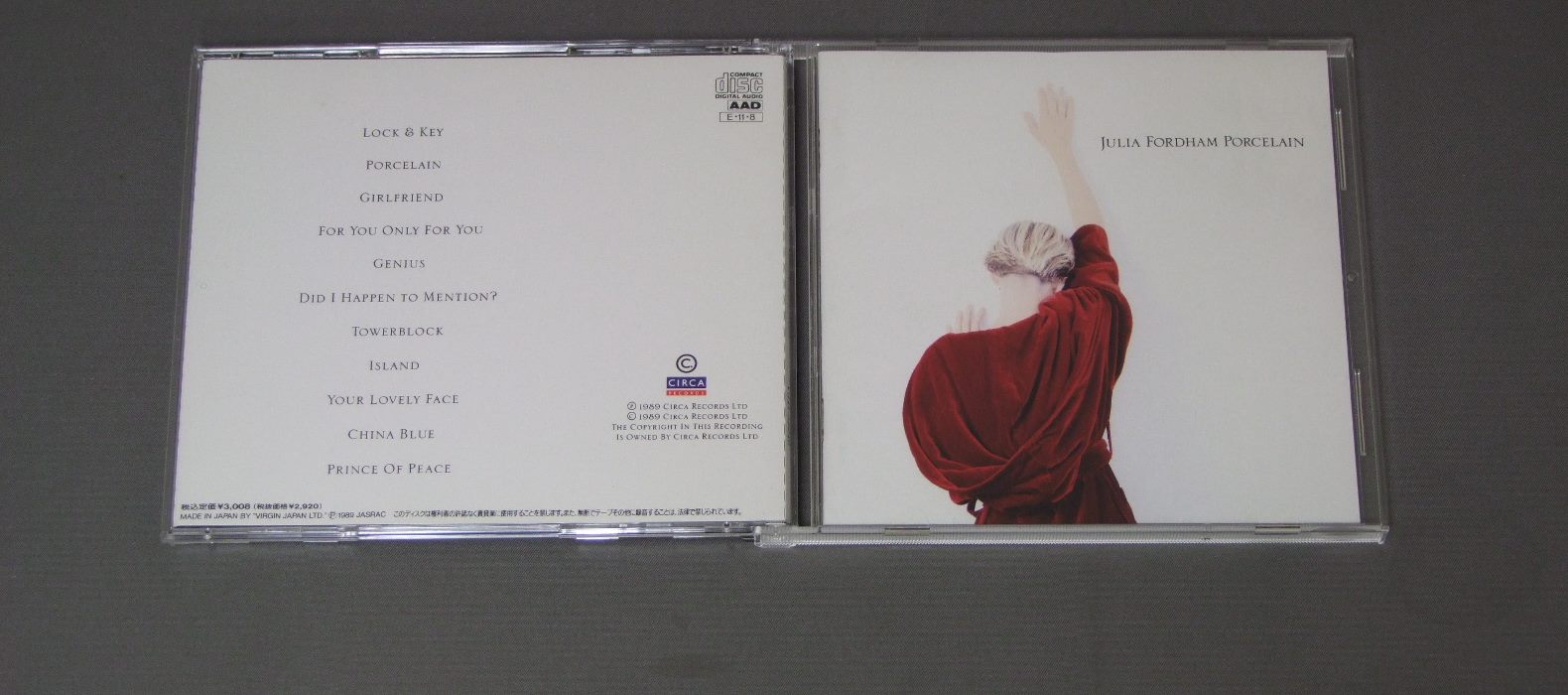 JULIA FORDHAM/PORCELAIN VJD32240 製造国:日本盤 / Media:CD外観:EX盤の状態:EX+ 価格(税込):¥330 送料 7inch:定形外郵便 360円~LP:定形外郵便 660円~送料は、注文の最終画面で確認頂けます。 > > JULIA FORDHAM/PORCELAIN 外観 (EX)特記事項:ヨレ、スレ、シミなど小 - 軽度です。外観EXの共通説明:ダメージが限定的。中古品としては保存状態がよい方。シミ、ヨゴレ、スレ 少し~軽度。 盤の状態 (EX+)特記事項:微細なスリキズが少々。きれいな感じの盤面です。盤EX+の共通説明:盤面の極薄いスリキズ、スレ少し程度 音に出そうなものは無いように見える(極軽微なソフトティック音は除く)。 Tweet それぞれの画像をクリックすると、大きい写真が見られます こちらの商品もお勧めです 1,980円 JUDY COLLINSジュディ・コリンズ / BREAD & ROSESパンと薔薇の人生 1,100円 KARLA BONOFFカーラ・ボノフ / RESTLESS NIGHTSささやく夜 1,650円 KATE BUSHケイト・ブッシュ / LION HEARTライオン・ハート