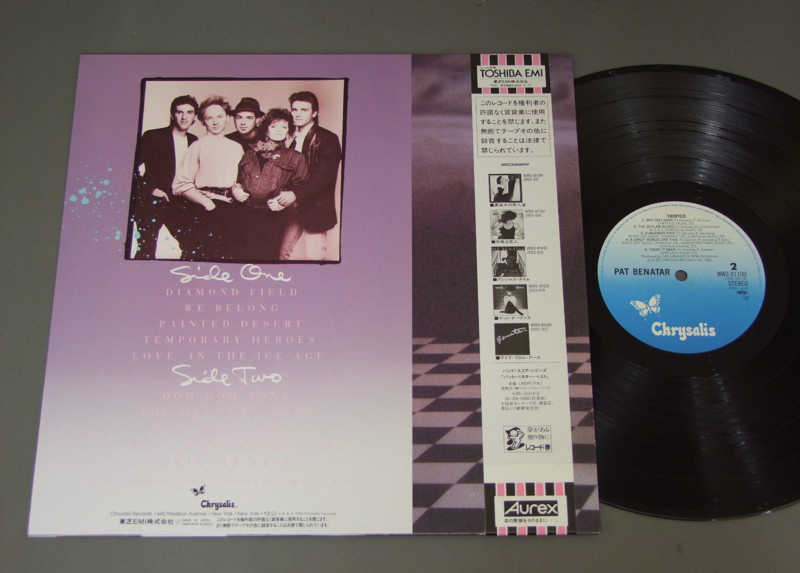 PAT BENATARパット・ベネター/TROPICOトロピコ WWS91100 製造国:日本盤 / Media:LP外観:EX+盤の状態:EX+帯:EX+ 価格(税込):¥1,100(売約済) 送料 7inch:定形外郵便 360円~LP:定形外郵便 660円~送料は、注文の最終画面で確認頂けます。 > > PAT BENATAR/TROPICO 外観 (EX+)特記事項:特記なし。外観EX+の共通説明:中古としては美品、一見してきれいでダメージが軽微。シミ、ヨゴレ、スレ有っても僅か~少し。 盤の状態 (EX+)特記事項:極薄いスリキズ・スレ少し。一見してきれいな状態です。盤EX+の共通説明:盤面の極薄いスリキズ、スレ少し程度 音に出そうなものは無いように見える(極軽微なソフトティック音は除く)。 帯の状態 (EX+):特記なし。 Tweet それぞれの画像をクリックすると、大きい写真が見られます こちらの商品もお勧めです 770円 CHEAP TRICKチープ・トリック / HEAVEN TONIGHT天国の罠 770円 CHEAP TRICKチープ・トリック / HEAVEN TONIGHT天国の罠(トリック) 660円 CULTURE CLUBカルチャー・クラブ / KISSING TO BE CLEVER 770円 CULTURE CLUBカルチャー・クラブ / WAR SONG戦争のうた 1,320円 TAZMANIAN DEVILSタズマニアン・デヴィルズ / TAZMANIAN DEVILSアメリカン・ドリームを探して 770円 CULTUTE CLUB / HOUSE ON FIRE 1,320円 QUARTERFLASHクウォーターフラッシュ / QUARTERFLASHミッドナイト・フラッシュ 440円 GLASS TIGERグラス・タイガー / DIAMOND SUNダイヤモンド・サン