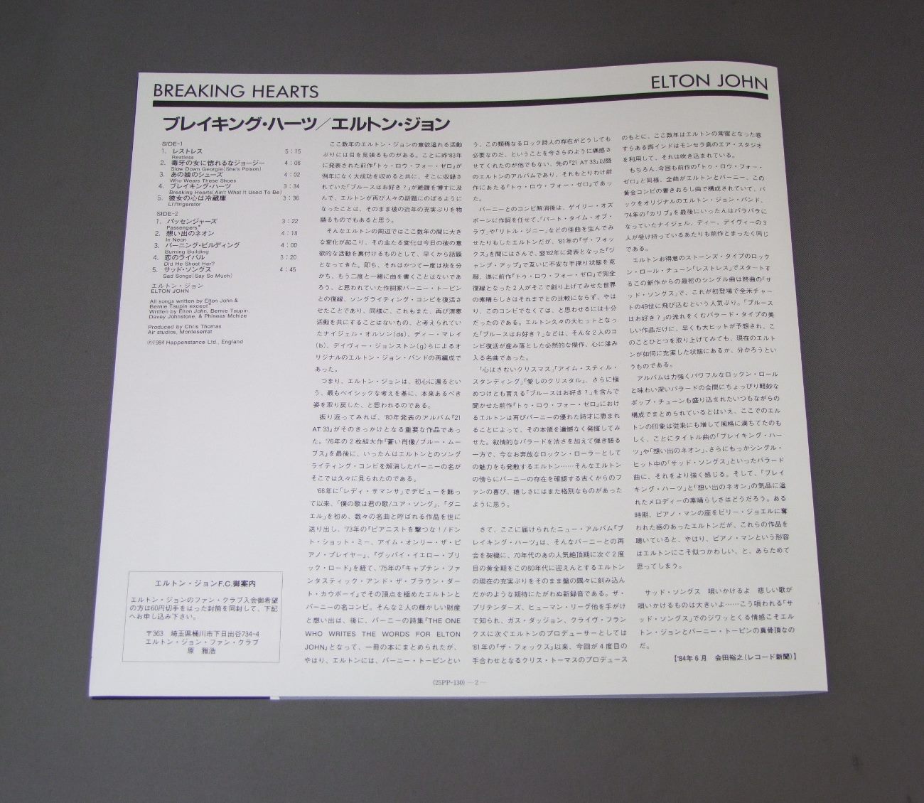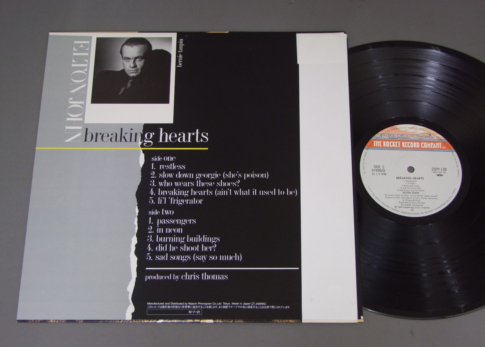 ELTON JOHNエルトン・ジョン/BREAKING HEARTSブレイキング・ハーツ 25PP130 製造国:日本盤 / Media:LP外観:EX盤の状態:EX+ 価格(税込):¥770(売約済) 送料 7inch:定形外郵便 360円~LP:定形外郵便 660円~送料は、注文の最終画面で確認頂けます。 > > ELTON JOHN/BREAKING HEARTS 外観 (EX)特記事項:特記なし。外観EXの共通説明:ダメージが限定的。中古品としては保存状態がよい方。シミ、ヨゴレ、スレ 少し~軽度。 盤の状態 (EX+)特記事項:極薄いスリキズ・スレ少し。一見してきれいな状態です。盤EX+の共通説明:盤面の極薄いスリキズ、スレ少し程度 音に出そうなものは無いように見える(極軽微なソフトティック音は除く)。 帯の状態 ():特記なし。 Tweet それぞれの画像をクリックすると、大きい写真が見られます こちらの商品もお勧めです 660円 JERRY VALEジェリー・ヴェール / LANGUAGE OF LOVE 60s ISSUE恋の讃歌 ペラジャケ 1,320円 BRUCE SPRINGSTEENブルース・スプリングスティーン / RIVERリバー 440円 JONNY WINTER / JOHN DAWSON WINTER 3 880円 PAUL SIMONポール・サイモン / ONE-TRICK PONYワン・トリック・ポニー 990円 SALVATORE ADAMOサルヴァトーレ・アダモ / DELUXE IN SALVATORE ADAMOデラックス イン サルヴァトーレ・アダモ 1,210円 WILLIE NELSONウィリー・ネルソン / PARTNERSサムシング 770円 DON HENLEYドン・ヘンリー / I CAN`T STAND STILLアイ・キャント・スタンド・スティル 660円 ERIC CARMENエリック・カルメン / TONIGHT YOU`RE MINEトゥナイト・ユー・アー・マイン