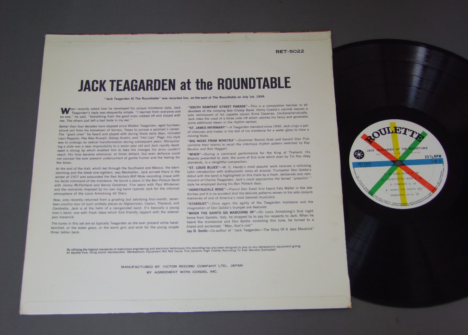 JACK TEAGARDEN/AT THE ROUNDTABLEオン・ステージ ミスター・ティーガーディン ペラジャケ RET5022 製造国:日本盤 / Media:LP外観:EX+盤の状態:EX+ 価格(税込):¥2,200(売約済) 送料 7inch:定形外郵便 360円~LP:定形外郵便 660円~送料は、注文の最終画面で確認頂けます。 > > JACK TEAGARDEN/AT THE ROUNDTABLE 外観 (EX+)特記事項:特記なし。外観EX+の共通説明:中古としては美品、一見してきれいでダメージが軽微。シミ、ヨゴレ、スレ有っても僅か~少し。 盤の状態 (EX+)特記事項:薄いスリキズ・スレ少し。一見してきれいな状態です。盤EX+の共通説明:盤面の極薄いスリキズ、スレ少し程度 音に出そうなものは無いように見える(極軽微なソフトティック音は除く)。 Tweet それぞれの画像をクリックすると、大きい写真が見られます こちらの商品もお勧めです 770円 CHICK COREA etcチック・コリア 他 / ECM SPECIALECMスペシャル 1,210円 JACQUES LOUSSIERジャック・ルーシエ / GOLDEN PLAYS BACH DOUBLE DELUXEゴールデン・プレイ・バッハ - ダブル・デラックス 1,210円 BUCK CLAYTONバック・クレイトン / PASSORT TO PARADISEスポート・トゥ・パラダイス 1,320円 SADAO WATANABE & CHARLIE MARIANO渡辺貞夫&チャーリー・マリアーノ / IBERIAN WALTZイベリアン・ワルツ 1,320円 THE QUINTETパーカー - ガレスピー - パウエル - ローチ - ミンガス / JAZZ AT MASSEY HALLジャズ・アット・マッセイ・ホール 770円 SADAO WATANABE渡辺貞夫 / MY DEAR LIFEマイ・ディア・ライフ 660円 SADAO WATANABE渡辺貞夫 / CALIFORNIA SHOWERカリフォルニア・シャワー 1,320円 TOSHIKO AKIYOSHI - LEW TABACKIN BIG BAND秋吉敏子=ルー・タバキン・ビッグ・バンド / INSIGHTSインサイツ