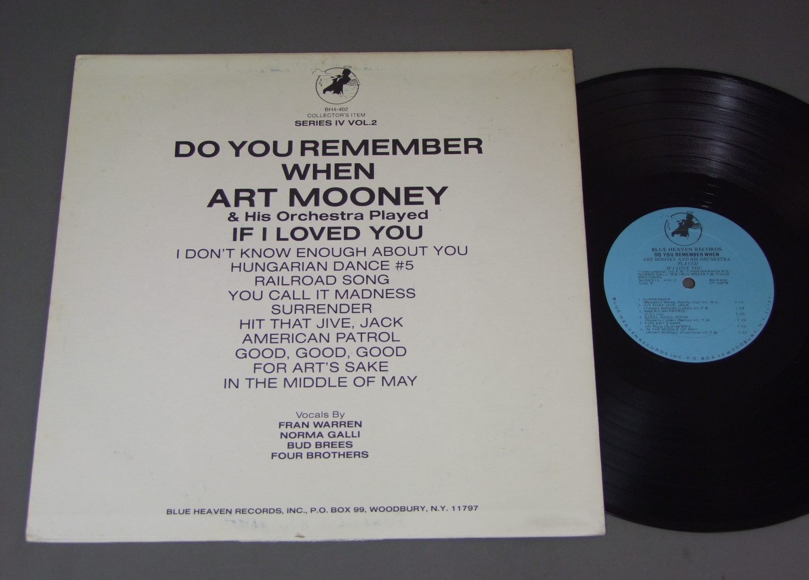 ART MOONEY & HIS ORCHESTRA/DO YOU REMEMBER WHEN BH4 402 製造国:米国盤 / Media:LP外観:EX-盤の状態:EX- 価格(税込):¥550(売約済) 送料 7inch:定形外郵便 360円~LP:定形外郵便 660円~送料は、注文の最終画面で確認頂けます。 > > ART MOONEY & HIS ORCHESTRA/DO YOU REMEMBER WHEN 外観 (EX-)特記事項:背や上ヘリ付近に日焼感軽有り。底抜け有り。外観EX-の共通説明:ダメージ軽度~多少。 中古品としては普通の状態。シミ、ヨゴレ、スレなど軽く~多少。 盤の状態 (EX-)特記事項:薄いスリキズ・細かい表面スレ多少ある感じ。殆どが軽微なものの様子です。盤EX-の共通説明:盤面のスリキズが多少有り。音に出そうなものは殆ど無いように見える~さほど気にならないぐらいの軽いプチ数カ所程度。 Tweet それぞれの画像をクリックすると、大きい写真が見られます こちらの商品もお勧めです 990円 RAY MC KINLEY - BERNIE PRIVIN - PEANUTS HUCKO etc / JAZZMEN IN UNIFORM PARIS 1945 770円 PAUL QUINICHETTTE / MOODS FEATURING PAUL QUINICHETTTE 1955 1,980円 MODERN JAZZ QUARTET / LEGENDARY PROFILE 770円 BOB WILBER / DIZZYFINGERS 440円 FRANKIE CARLE / HONKY-TONK HITS BY THE DOZEN 550円 TEDDY WILLSON etc / GREAT SWING JAM SESSIONS RECORDED 1940 770円 GATO BARBIERI / TROPICO 770円 HARRISON & BLANCHARD / BLACK PEARL