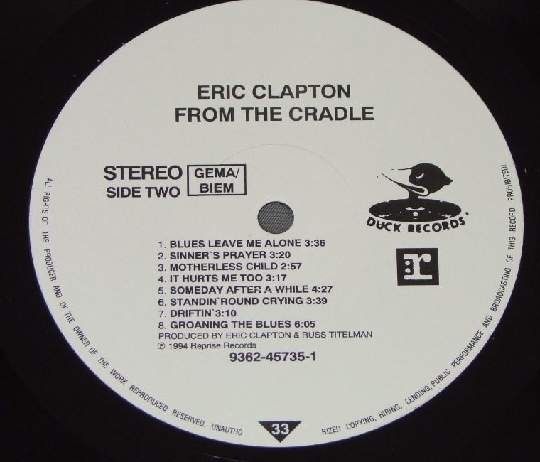 ERIC CLAPTON/FROM THE CRADLE 9362-45735-1 製造国:独盤 / Media:LP外観:EX+盤の状態:EX+ 価格(税込):¥6,600(売約済) 送料 7inch:定形外郵便 360円~LP:定形外郵便 660円~送料は、注文の最終画面で確認頂けます。 > > ERIC CLAPTON/FROM THE CRADLE 外観 (EX+)特記事項:表ジャケの右側に製造過程による横筋が数本でていますが、ジャケ表面は表裏、見開き共に全体的にスレやスリキズ、よごれ等あまり無い感じ。外観EX+の共通説明:中古としては美品、一見してきれいでダメージが軽微。シミ、ヨゴレ、スレ有っても僅か~少し。 盤の状態 (EX+)特記事項:極薄いスリキズ・スレ少しある程度。音に出そうなものもなく一見してきれいな状態です。曲間など、静かなところを中心に聴いて見ましたが、チリノイズ少ないきれいな再生具合でした。盤EX+の共通説明:盤面の極薄いスリキズ、スレ少し程度 音に出そうなものは無いように見える(極軽微なソフトティック音は除く)。 その他:ドイツ・プレスの欧州共通盤。アナログ盤は貴重。 Tweet それぞれの画像をクリックすると、大きい写真が見られます こちらの商品もお勧めです 3,850円 CREAM / BEST OF CREAM 6,600円 CREAM / CREAM ON TOP
