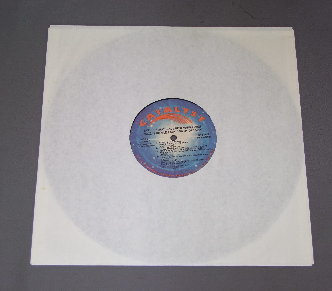 EARL FATHA HINES WITH MARVA JOSIE/JAZZ IS HIS OLD LADY CAT7622 製造国:米国盤 / Media:LP外観:EX盤の状態:EX 価格(税込):¥990(売約済) 送料 7inch:定形外郵便 360円~LP:定形外郵便 660円~送料は、注文の最終画面で確認頂けます。 > > EARL FATHA HINES WITH MARVA JOSIE/JAZZ IS HIS OLD LADY 外観 (EX)特記事項:レコード取り出し口下辺りにヨレ。表ジャケにスリキズが少し。外観EXの共通説明:ダメージが限定的。中古品としては保存状態がよい方。シミ、ヨゴレ、スレ 少し~軽度。 盤の状態 (EX)特記事項:薄いスリキズ・スレ軽くある感じ。軽微なものの様子です。盤EXの共通説明:盤面のスリキズが薄いものが少し~軽度 音に出そうなものは無いように見える(軽微なソフトティック音は除く)。 Tweet それぞれの画像をクリックすると、大きい写真が見られます こちらの商品もお勧めです 1,210円 BUTCH THOMPSON - HAL SMITH & CHARLIE DEVORE / MILEMBERG JOYSCHARLIE DEVOREサイン付 880円 BLUE ANGEL JAZZ CLUB / JAZZ AT PASADENA `69 VOL2 1,980円 ART HEATLIE / SOUL HITS-SAX STYLE 440円 RED MCKENZIE-EDDIE CONDON / CHICAGOANS 1,320円 YANK LAWSON / BIG YANK IS HERE ! 1,100円 REX STEWART / AND THE ELLINGTONIANS 770円 TEDDY WILSON AND HIS TRIO / ON TOUR 1,980円 MODERN JAZZ QUARTET / LEGENDARY PROFILE