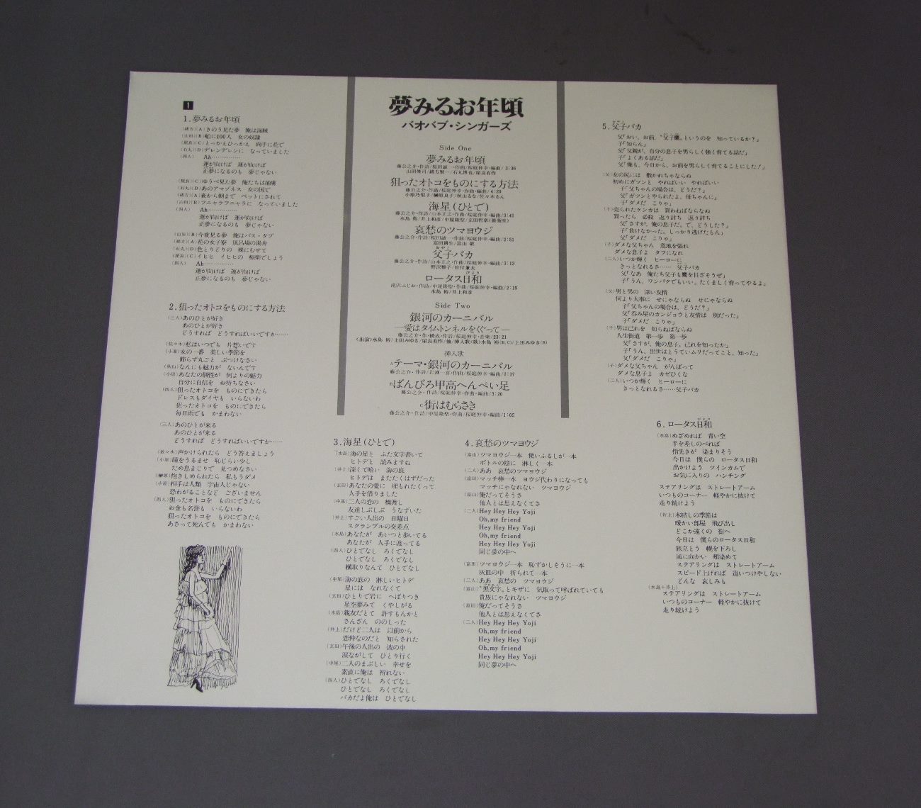 BAOBAB SINGERSバオバブ・シンガーズ(80年代人気声優)/Yumemiru Otoshigoro夢みるお年頃 K25A207 製造国:日本盤 / Media:LP外観:EX盤の状態:EX帯:EX+ 価格(税込):¥1,100(売約済) 送料 7inch:定形外郵便 360円~LP:定形外郵便 660円~送料は、注文の最終画面で確認頂けます。 > > BAOBAB SINGERS/Yumemiru Otoshigoro 外観 (EX)特記事項:特記なし。外観EXの共通説明:ダメージが限定的。中古品としては保存状態がよい方。シミ、ヨゴレ、スレ 少し~軽度。 盤の状態 (EX)特記事項:薄いスリキズ・スレ軽くある感じ。プチ出そうなところは少しだけで、ほとんどが軽微なものの様子です。盤EXの共通説明:盤面のスリキズが薄いものが少し~軽度 音に出そうなものは無いように見える(軽微なソフトティック音は除く)。 帯の状態 (EX+):特記なし。 Tweet それぞれの画像をクリックすると、大きい写真が見られます こちらの商品もお勧めです 770円 ANIME GUNDAM 3機動戦士ガンダム3 / めぐり逢い宇宙 770円 SPACE RUNAWAY IDEON伝説巨神イデオン / MOVIE SOUND TRACK映画イデオン 770円 CRUSHER JOEクラッシャージョウ / SOUND TRACK音楽篇 1,650円 ANIME SYBORG 009アニメ サイボーグ009 / TV ORIGINAL SOUNDTRACKテレビ・オリジナル・サウンドトラック 1,650円 CYBORG 009サイボーグ009 / TV SERIES VOL1Xの挑戦 1,320円 ANIME GATCHAMANアニメ 科学忍者隊 ガッチャマン / GATCHAMAN 2 VOL2ガッチャマン? VOL2 1,650円 ANIME HEAVY METAL L GAIM重戦機エルガイム / ODYSSEYオデッセイ 550円 AURA BATTLER DUNBINE聖戦士ダンバイン / ORIGINAL SOUND TRACKダンバイン2