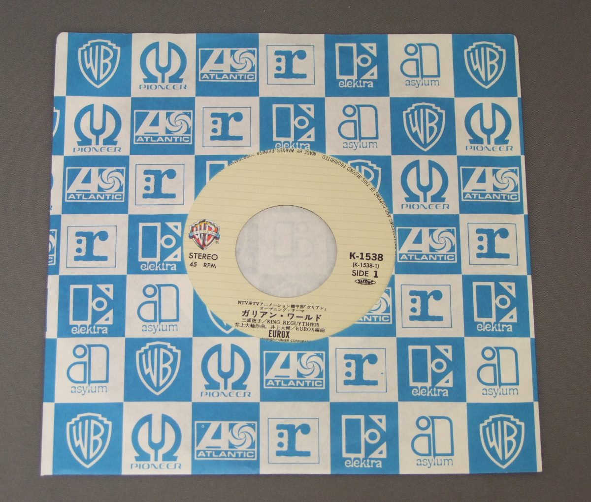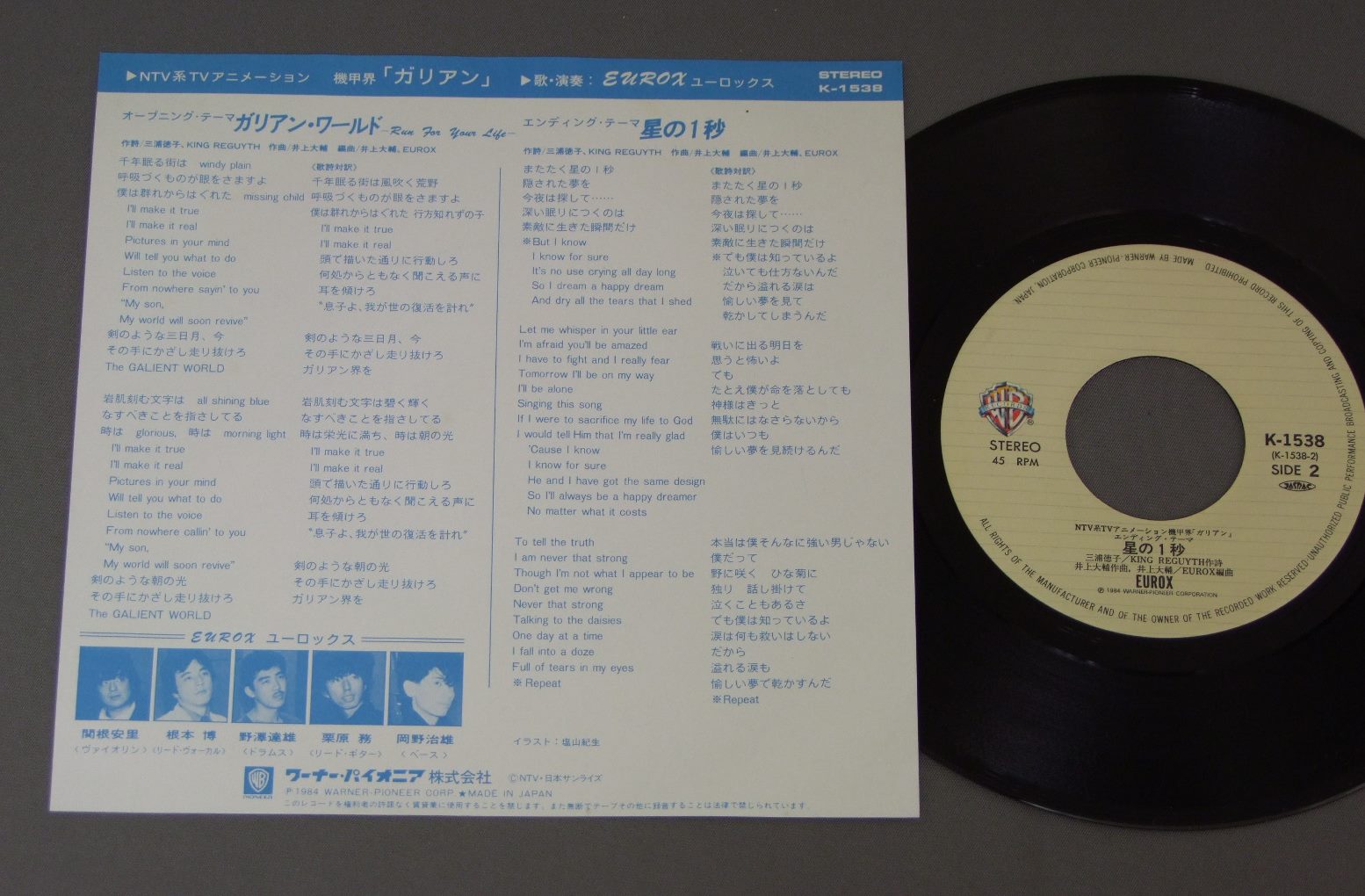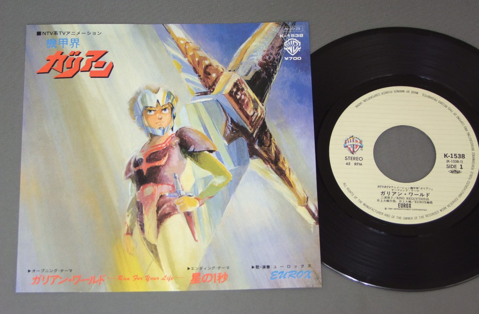 ANIME GALIENTユーロックス/OPNING THEMEアニメ「機甲界ガリアン」ガリアン・ワールド K1538 製造国:日本盤 / Media:7inch外観:EX+盤の状態:EX+ 価格(税込):¥1,100(売約済) 送料 7inch:定形外郵便 360円~LP:定形外郵便 660円~送料は、注文の最終画面で確認頂けます。 > > ANIME GALIENT/OPNING THEME 外観 (EX+)特記事項:特記なし。外観EX+の共通説明:中古としては美品、一見してきれいでダメージが軽微。シミ、ヨゴレ、スレ有っても僅か~少し。 盤の状態 (EX+)特記事項:極薄いスリキズ・スレ少し。一見してきれいな状態です。盤EX+の共通説明:盤面の極薄いスリキズ、スレ少し程度 音に出そうなものは無いように見える(極軽微なソフトティック音は除く)。 Tweet それぞれの画像をクリックすると、大きい写真が見られます こちらの商品もお勧めです 550円 CRUSHER JOEクラッシャージョウ / ORIGINAL SOUND TRACKドラマ篇 990円 SHOTARO ISHINOMORI石ノ森章太郎 / CYBORG 009サイボーグ009 770円 ANIME GUNDAM 3機動戦士ガンダム3 / めぐり逢い宇宙 770円 ANIME SPACE BATTLE SHIP YAMATOアニメ 宇宙戦艦ヤマト / NEW DEPARTURE新たなる旅立ち 770円 SPACE RUNAWAY IDEON伝説巨神イデオン / MOVIE SOUND TRACK映画イデオン 1,320円 ANIME SPACE PIRATE CAPTAIN HARLOCK宇宙海賊 キャプテン・ハーロック / TV SOUNDTRACK交響組曲 テレビ・サウンドトラック盤 770円 CRUSHER JOEクラッシャージョウ / SOUND TRACK音楽篇 440円 TALIZMANタリスマン / SUPERMAN LOCKロック組曲 超人ロック