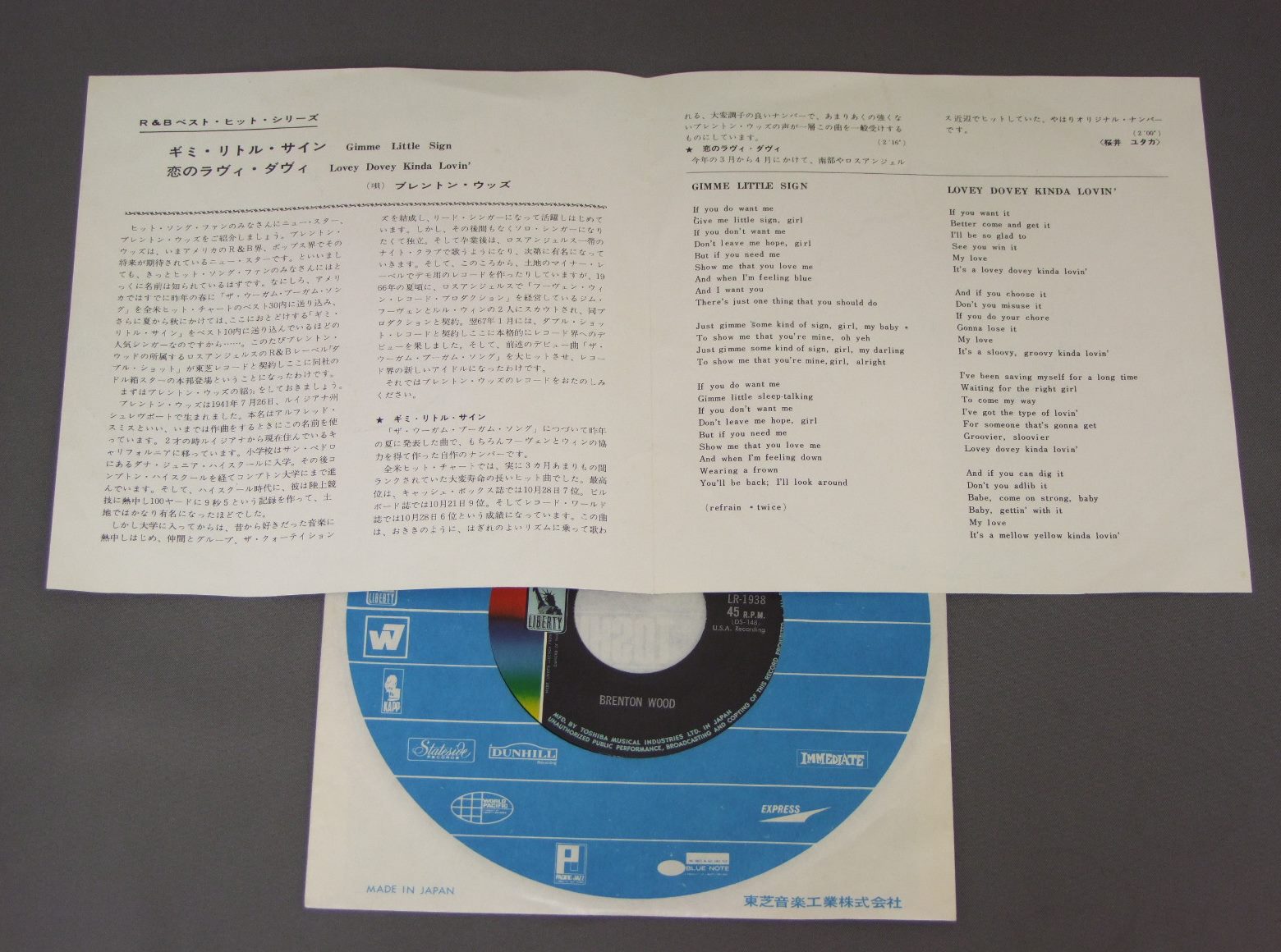 BRENTON WOODブレントン・ウッズ/GIMME LITTLE SIGNギミ・リトル・サイン LR1938 製造国:日本盤 / Media:7inch外観:EX盤の状態:EX+ 価格(税込):¥770(売約済) 送料 7inch:定形外郵便 360円~LP:定形外郵便 660円~送料は、注文の最終画面で確認頂けます。 > > BRENTON WOOD/GIMME LITTLE SIGN 外観 (EX)特記事項:特記なし。外観EXの共通説明:ダメージが限定的。中古品としては保存状態がよい方。シミ、ヨゴレ、スレ 少し~軽度。 盤の状態 (EX+)特記事項:極薄いスリキズ・スレ少し。一見してきれいな状態です。盤EX+の共通説明:盤面の極薄いスリキズ、スレ少し程度 音に出そうなものは無いように見える(極軽微なソフトティック音は除く)。 Tweet それぞれの画像をクリックすると、大きい写真が見られます こちらの商品もお勧めです 1,320円 STAX - VOLT LABL SOUL / LIVE IN PARISソウル・エクスプロージョン ライヴ・イン・パリ 880円 DIANA ROSSダイアナ・ロス / WHY DO FOOLS FALL IN LOVEファースト・レディ 恋はくせもの 770円 TUXEDO JUNCTIONタキシード・ジャンクション / TAKE THE A TRAINA列車で行こう 770円 CHAMPAIGNシャンペーン / MODERN HEARTモダン・ハート 770円 MARTHA REEVESマーサ・リーブス / 1st ALBUMソロ・ファースト 1,210円 TEMPTATIONSテンプテーションズ / BACK TO BASICSバック・トゥー・ベイシックス 1,320円 EARTH. WIND & FIREアース・ウインド & ファイアー / FACESフェイセス 1,210円 EARTH. WIND & FIREアース・ウインド&ファイアー / ELECTRIC UNIVERSEエレクトリック・ユニヴァース