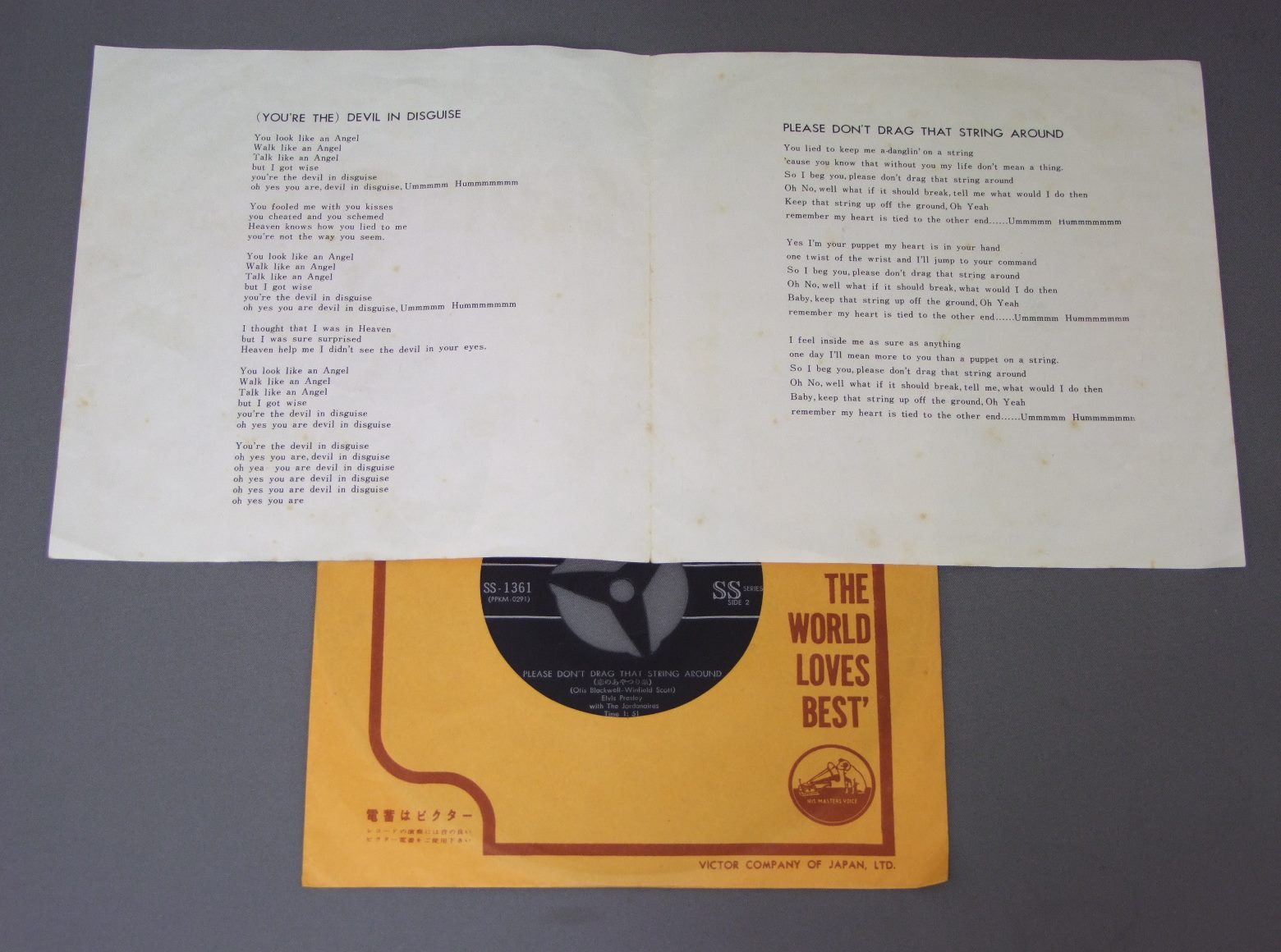 ELVIS PRESLEYエルヴィス・プレスリー/THE DEVIL IN DISGUISE悲しき悪魔 SS1361 製造国:日本盤 / Media:7inch外観:EX-盤の状態:EX 価格(税込):¥880 送料 7inch:定形外郵便 360円~LP:定形外郵便 660円~送料は、注文の最終画面で確認頂けます。 > > ELVIS PRESLEY/THE DEVIL IN DISGUISE 外観 (EX-)特記事項:見開きや裏ジャケにシミ多少有り。外観EX-の共通説明:ダメージ軽度~多少。 中古品としては普通の状態。シミ、ヨゴレ、スレなど軽く~多少。 盤の状態 (EX)特記事項:薄いスリキズ・スレ軽くある感じ。殆どが軽微なものの様子です。盤EXの共通説明:盤面のスリキズが薄いものが少し~軽度 音に出そうなものは無いように見える(軽微なソフトティック音は除く)。 Tweet それぞれの画像をクリックすると、大きい写真が見られます こちらの商品もお勧めです 660円 PAUL ANKAポール・アンカ / BEST OF PAUL ANKAポール・アンカのすべて 1,210円 EVERLY BROTHERSエヴァリー・ブラザース / DATE WITH EVERY BROTHERSデイト・ウィズ・エヴァリー・ブラザーズ 1,320円 VENTURESベンチャーズ / VENTURES A GO GOベンチャーズ・ア・ゴー・ゴー 990円 VENTURESベンチャーズ / ROOK`N`ROLL GRAFFITIロックン・ロール・グラフィティ 770円 ELVIS PRESLEYエルヴィス・プレスリー / ELVIS VOL2 A LEGENDARY PERFORMER + BOOKLETエルヴィス・プレスリーの歴史 VOL2 880円 VENTURESベンチャーズ / JOYジョイ -ディスカバー・クラシック- 880円 ELVISエルヴィス・プレスリー / THAT`S THE WAY IT ISこの胸のときめきを/映画「エルヴィス・オン・ステージ」主題歌集 880円 LETTERMENレターメン / LOVE BOOK愛の世界