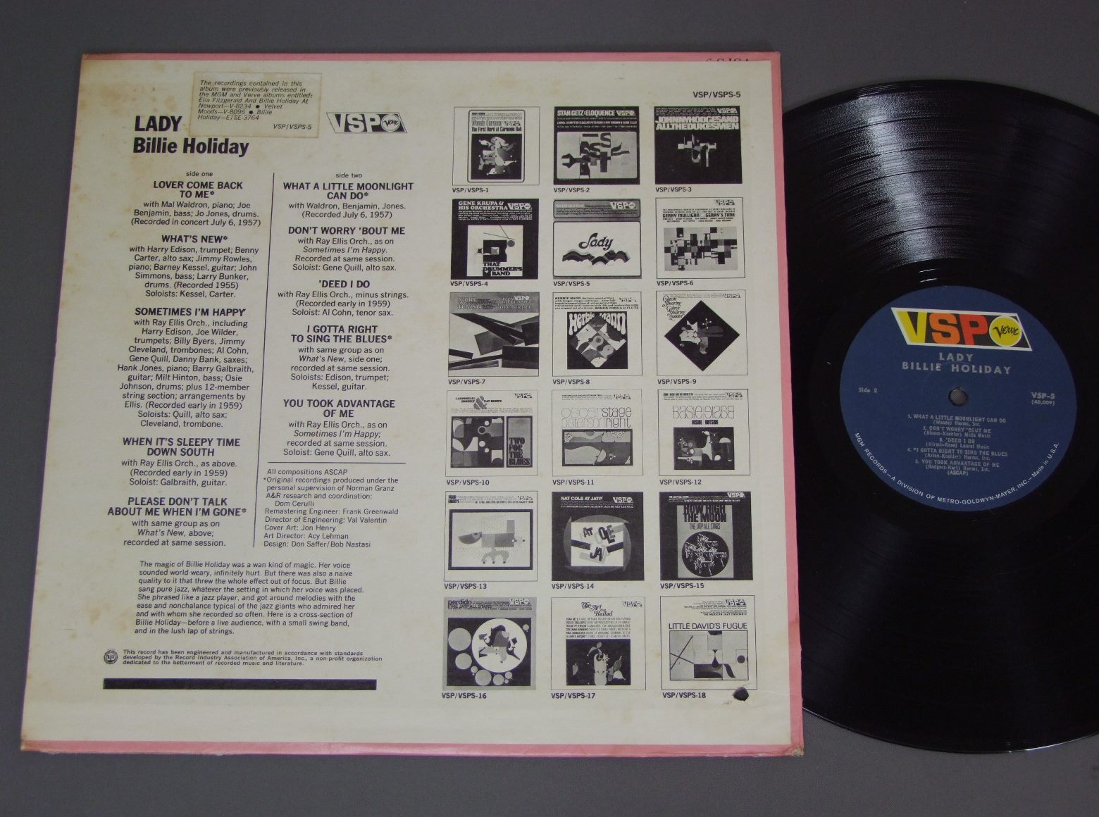 BILLIE HOLIDAY/LADY VSP5 製造国:米国盤 / Media:LP外観:VG+盤の状態:EX 価格(税込):¥2,200(売約済) 送料 7inch:定形外郵便 360円~LP:定形外郵便 660円~送料は、注文の最終画面で確認頂けます。 > > BILLIE HOLIDAY/LADY 外観 (VG+)特記事項:背下にウオーターダメージ。裏ジャケにシミ。背下付近にカットアウト穴。外観VG+の共通説明:ダメージやや有り。シミ、ヨゴレ、スレなど多少~やや多め。 盤の状態 (EX)特記事項:B面の前半にプレスミス風の白い曇が有ります。少しノイズありますが、軽微なスクラッチ系のもの。他薄いスリキズ・スレ少し。一見してきれいな状態です。盤EXの共通説明:盤面のスリキズが薄いものが少し~軽度 音に出そうなものは無いように見える(軽微なソフトティック音は除く)。 Tweet それぞれの画像をクリックすると、大きい写真が見られます こちらの商品もお勧めです 990円 CARMAN MCRAE / ALFIE 1,210円 TERESA BREWER & THE WORLD`S GREATEST JAZZ BAND / GOOD NEWS (RALPH SUTTON AUTOGRAPHED)GOOD NEWS (RALPH SUTTONサイン付) 1,320円 BING CROSBY / BING CROSBY 3,850円 LUANN SIMMS / AT SEPARATE TABLES (AUTOGRAPHED)AT SEPARATE TABLES サイン付 550円 MEL TORME / `ROUND MIDNIGHT 770円 SWINGLE SINGERS / GOING BAROQUE SWINGING HITS OF HANDEL 660円 JOAN MORRIS WILLIAM BOLCOMジョーン・モリス- ウィリアム・ボルコム / AFTER THE BALL- A TREASURY OF TURN OF THE CENTURY POPULAR SONGS舞踏会のあとで アメリカン・ヒット・ソングの黎明期 1,210円 BING CROSBY / EASY TO REMEMBER 1931-36